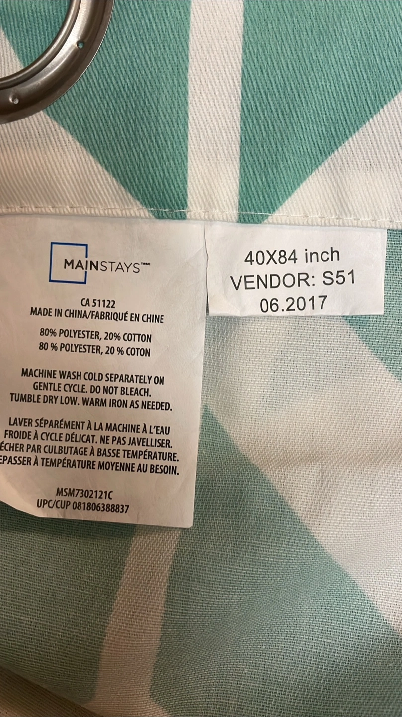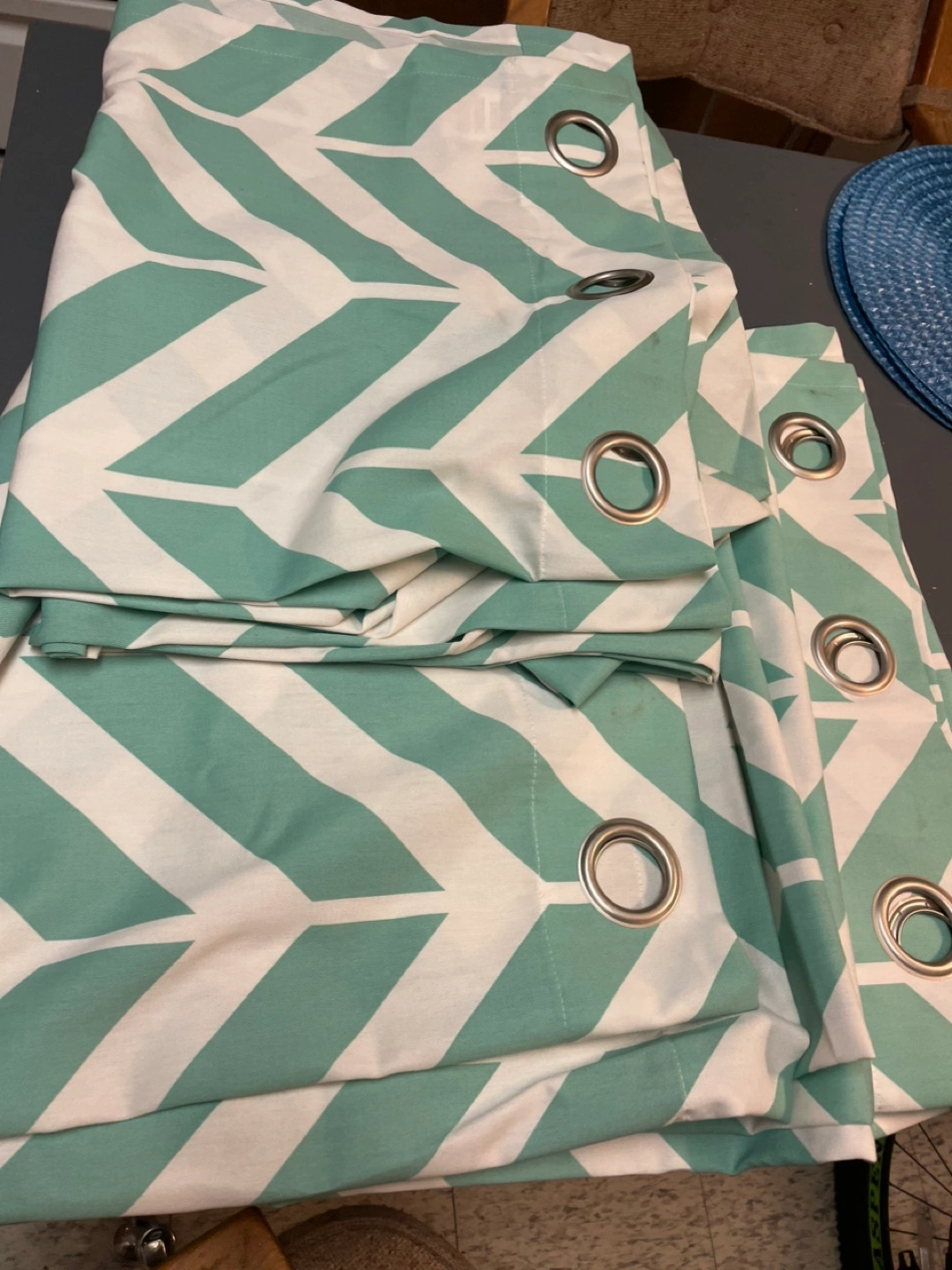 Here are some Mainstays curtains in a fun chevron pattern! They are 40x84 inches and made of 80% polyester and 20% cotton