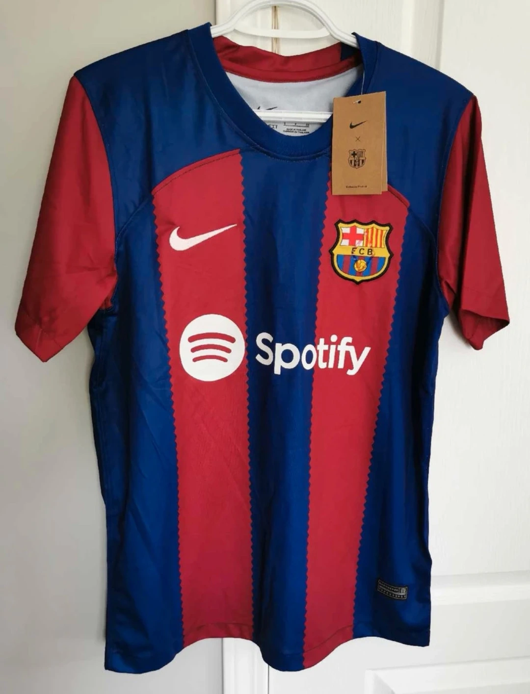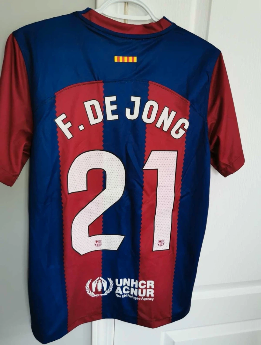 Selling a Nike FC Barcelona soccer jersey and shorts. Both are size small. The jersey features F. De Jong and the number 21 on the back. The shorts are blue with the FCB logo. Great for any Barca fan!