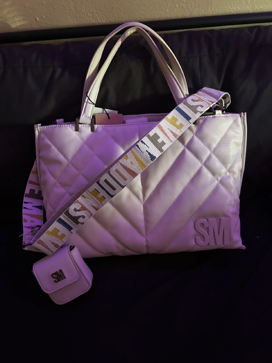 New Steven Madden hand bag beige color. side straps . Holds lots of things never been used medium size. Beautiful bag.