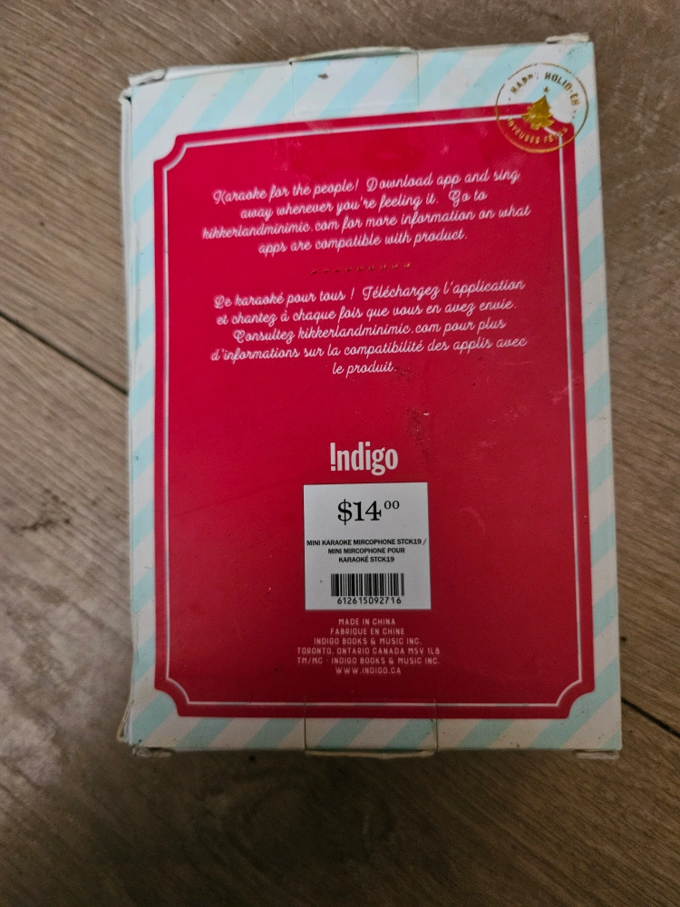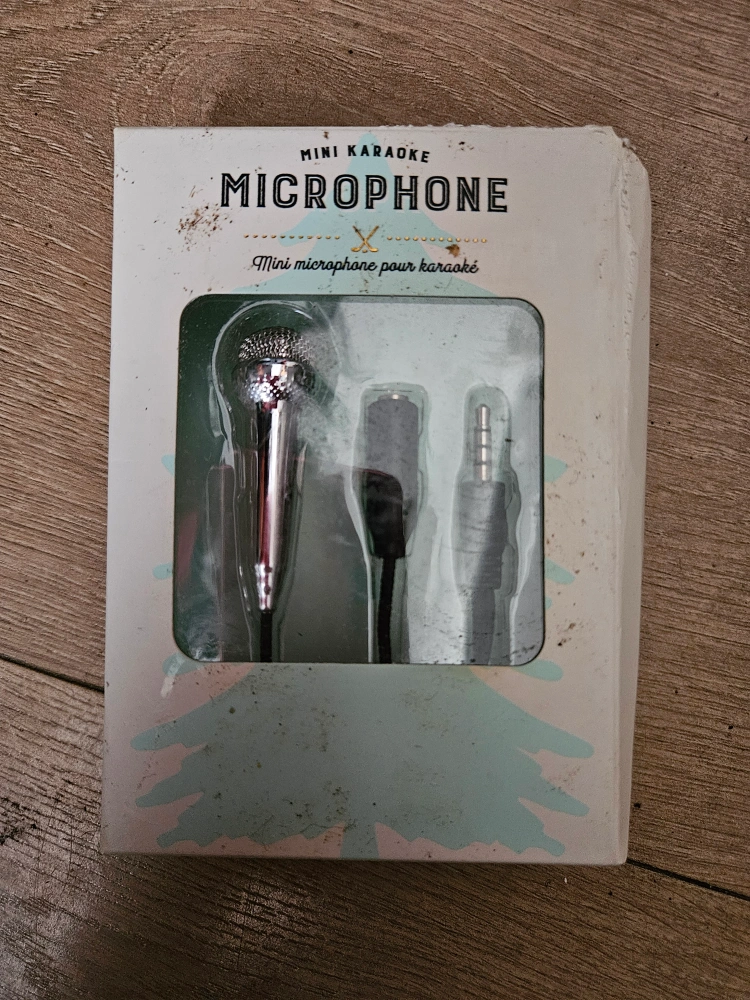 Selling a brand new Mini Karaoke Microphone still in its original box! It's perfect for some fun karaoke sessions. The box includes the microphone and necessary cables. Originally bought for $14 at Indigo. Comes from a smoke-free home