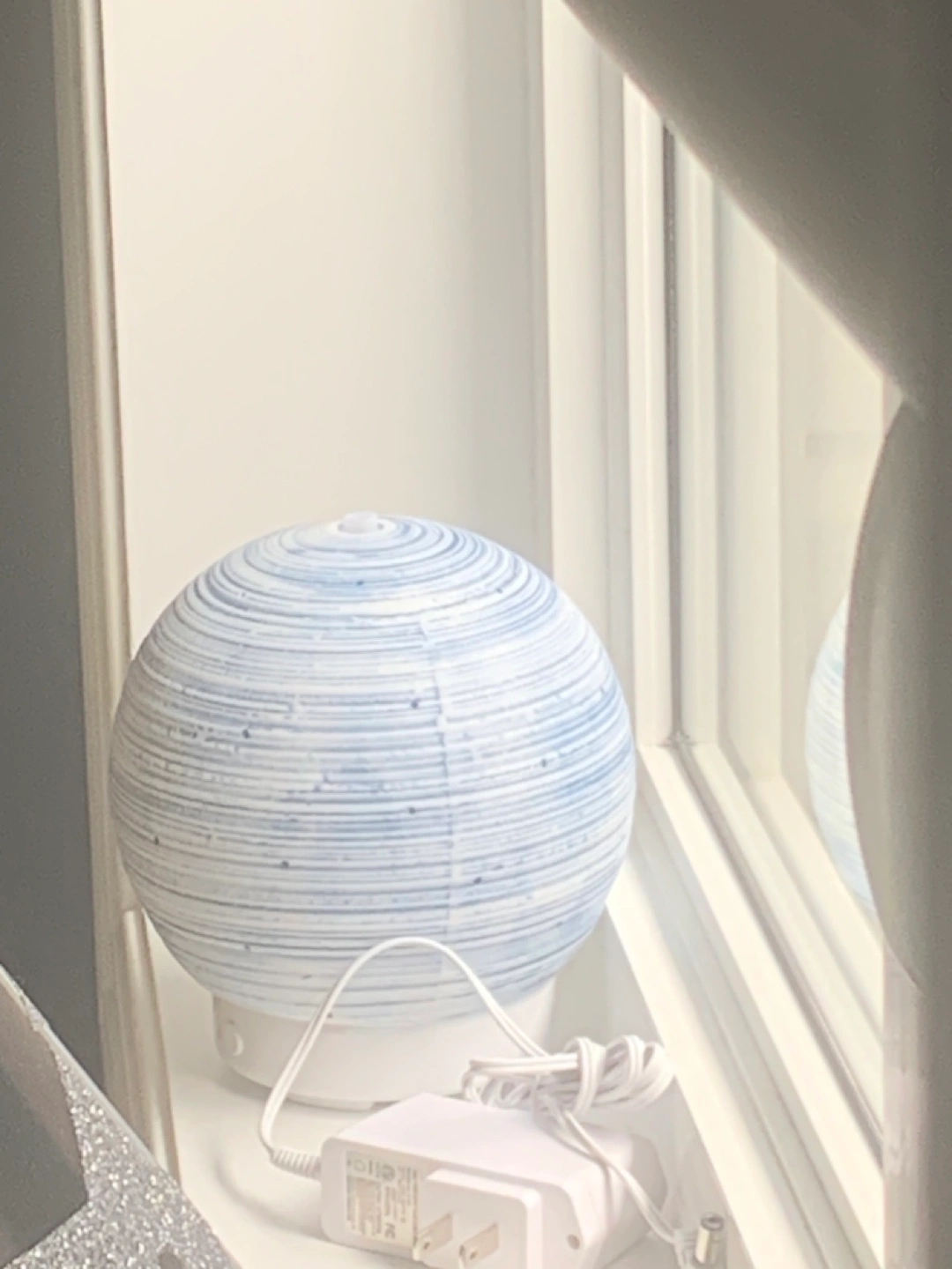 Selling a gently used aroma diffuser! It's a lovely blue and white colour, perfect for adding a calming vibe to any room. It comes with the power adapter as well