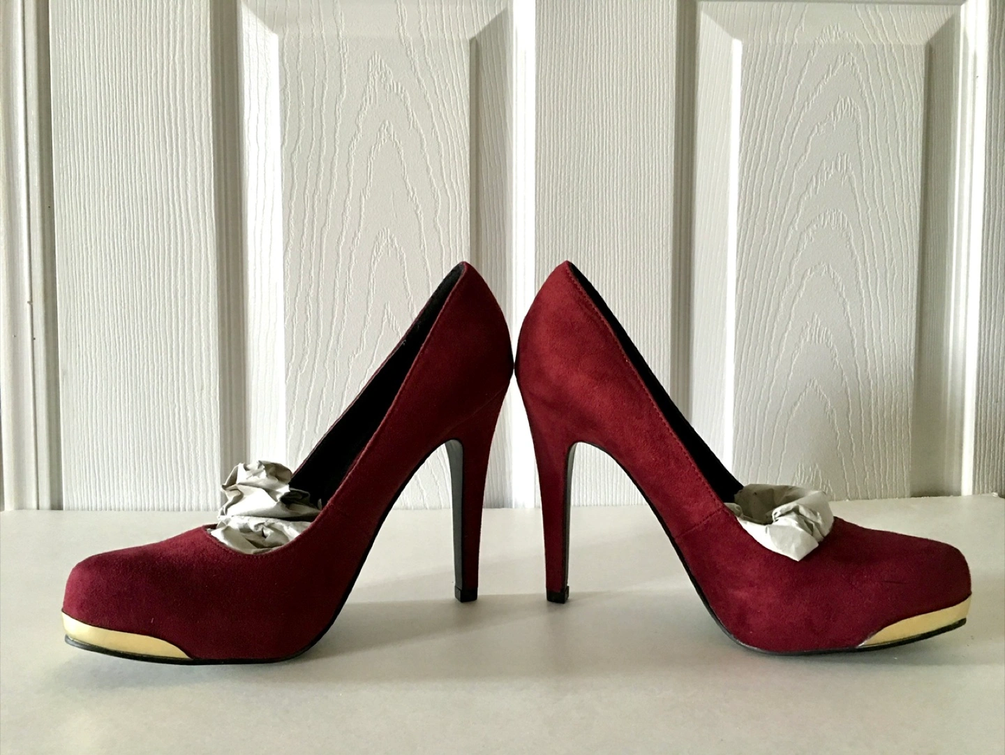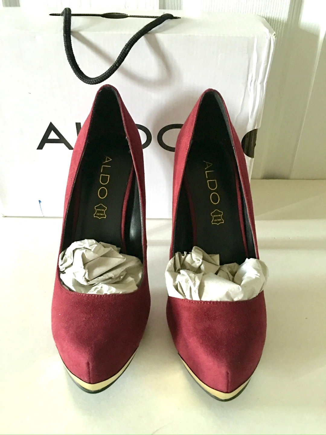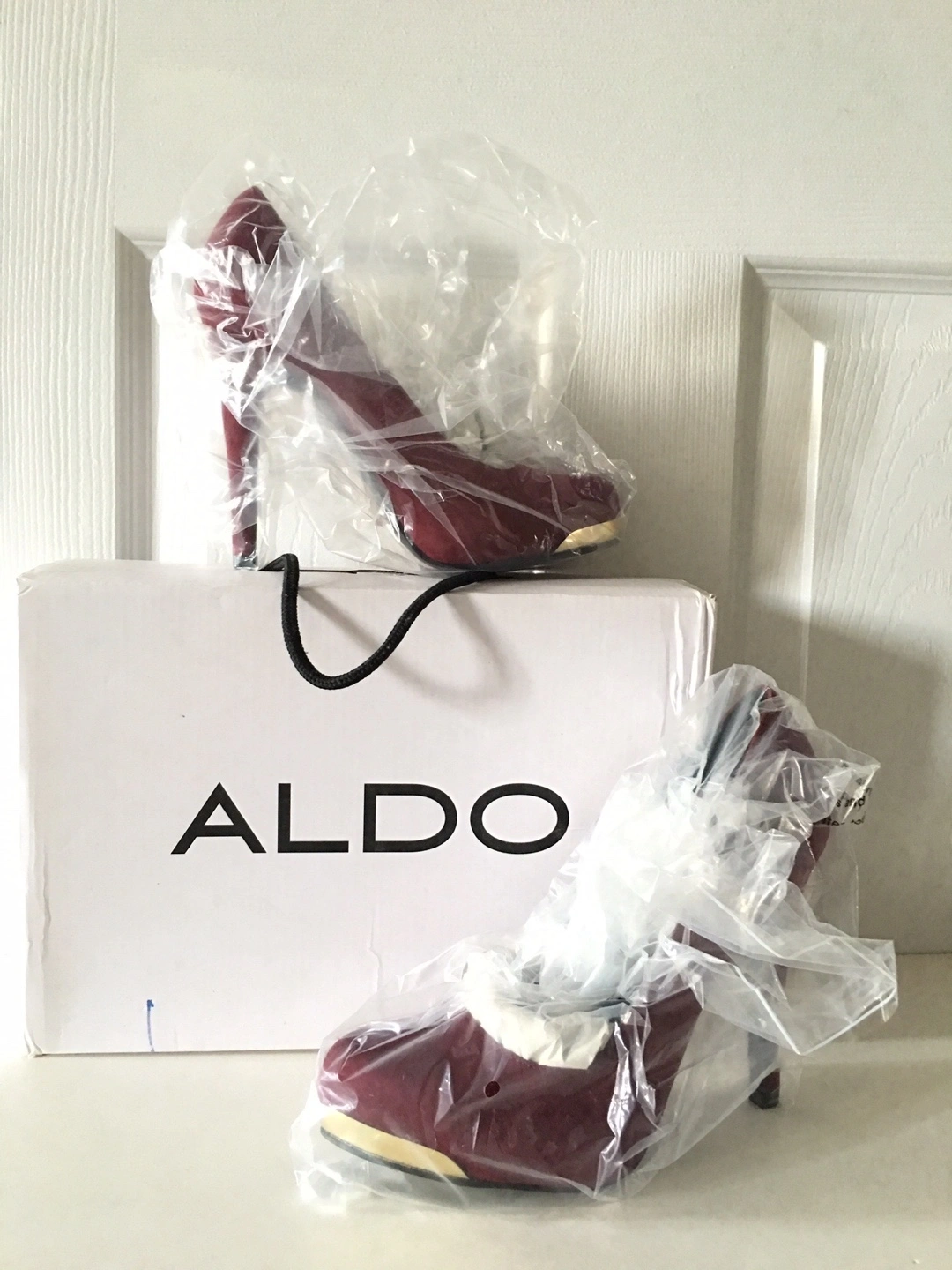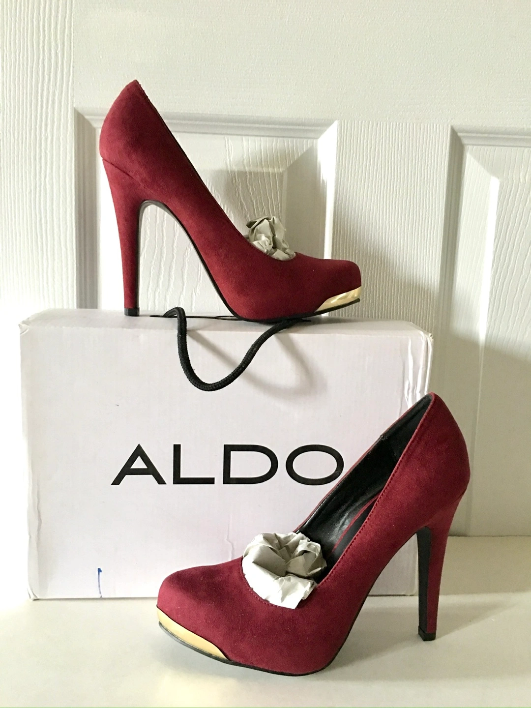 Selling a pair of Aldo heels in a lovely burgundy colour. They are a size 6 and come with the original box. Perfect for a night out or a special occasion!
