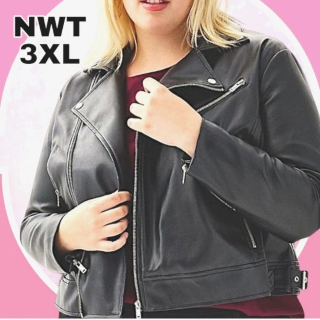 NWT 3XL Faux Moto Jacket w 2 Zippered Side Pockets