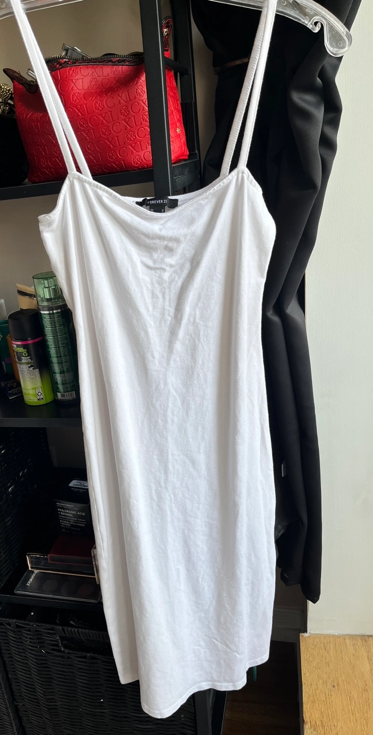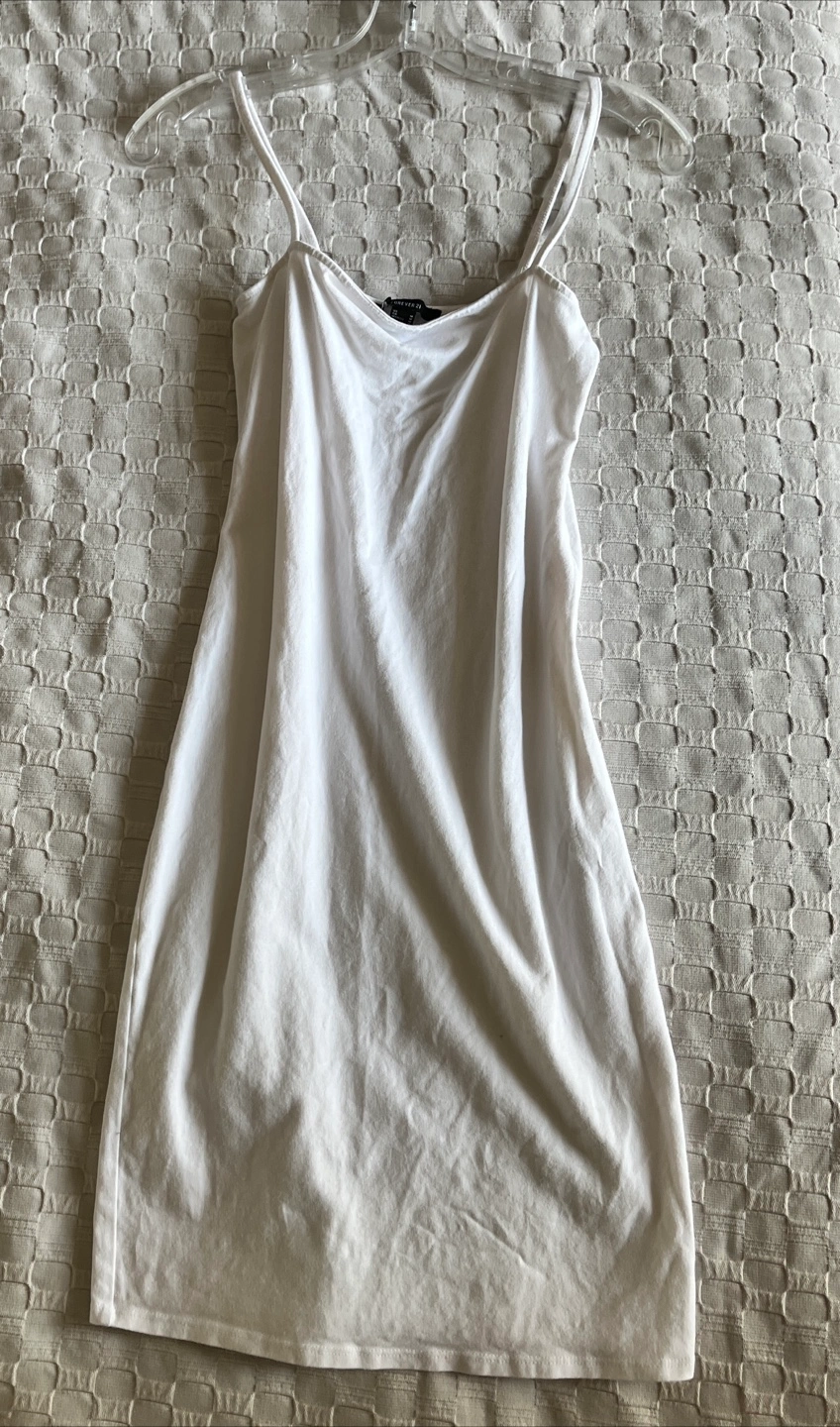 A simple and stylish white dress from Forever 21 in size small. It's perfect for summer or layering!