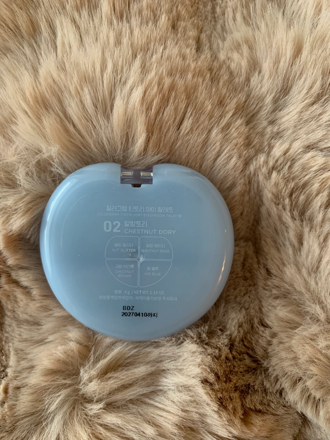 Selling a Colorgram Tintin Eyeshadow Palette in the 02 Chestnut Dory colour. It features four beautiful shades: Nut Glitter, Chestnut Beige, Chestnut Brown, and Tint Blue. Expiry Date is 2027 April 04