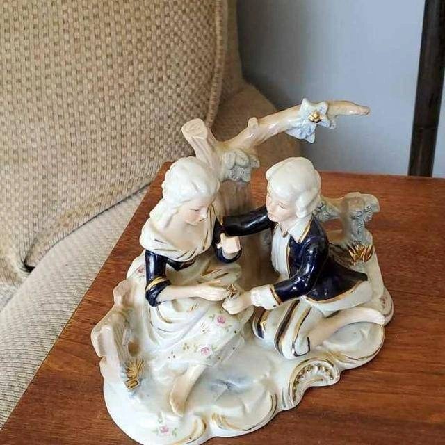 KPM figurine, vintage porcelain couple, romantic figurine, hand-painted KPM, antique European porcelain, collectible figurine, 18th century décor, vintage home décor, porcelain lovers gift.