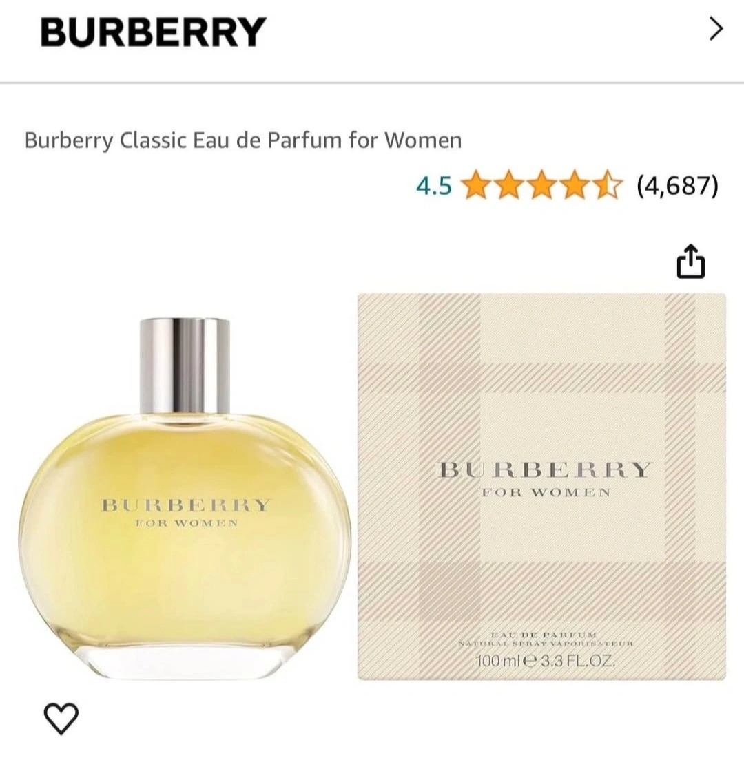 Selling a bottle of Burberry Classic Eau de Parfum for Women. It's a 100ml bottle, perfect for everyday wear or a special occasion! The fragrance is a timeless classic from Burberry, known for its elegant and sophisticated scent profile.