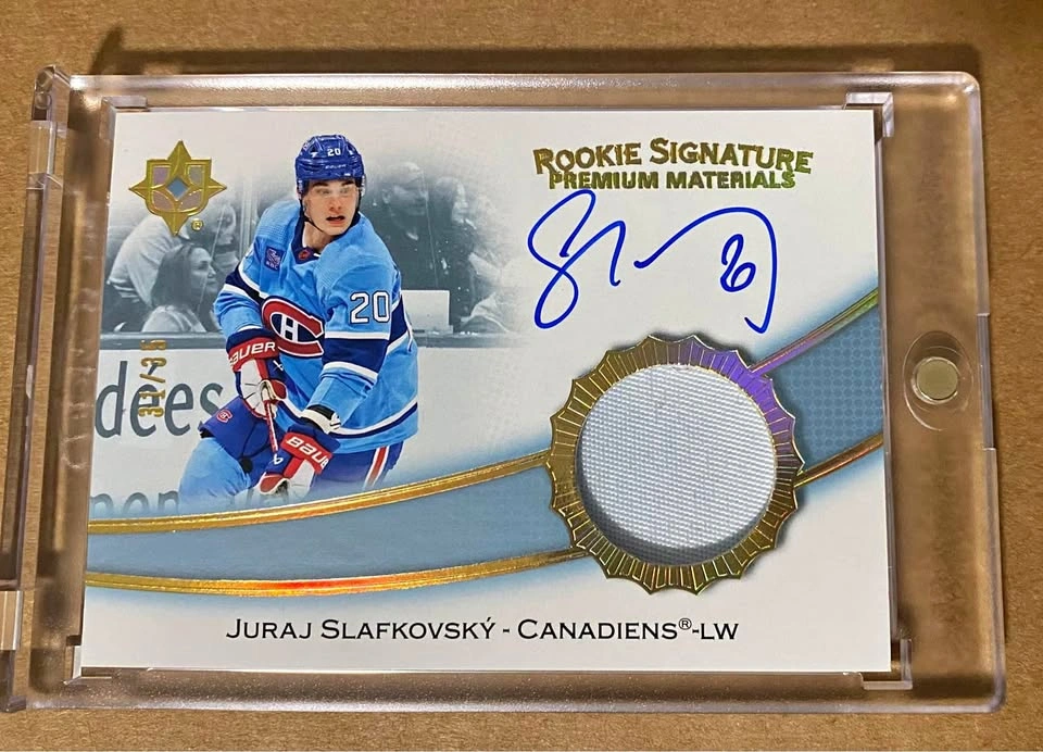 Pulled by me, this is a 2023-24 Ultimate Collection Juraj Slafkovsky Rookie Signature Premium Materials Auto numbered 31/35. Asking $250.