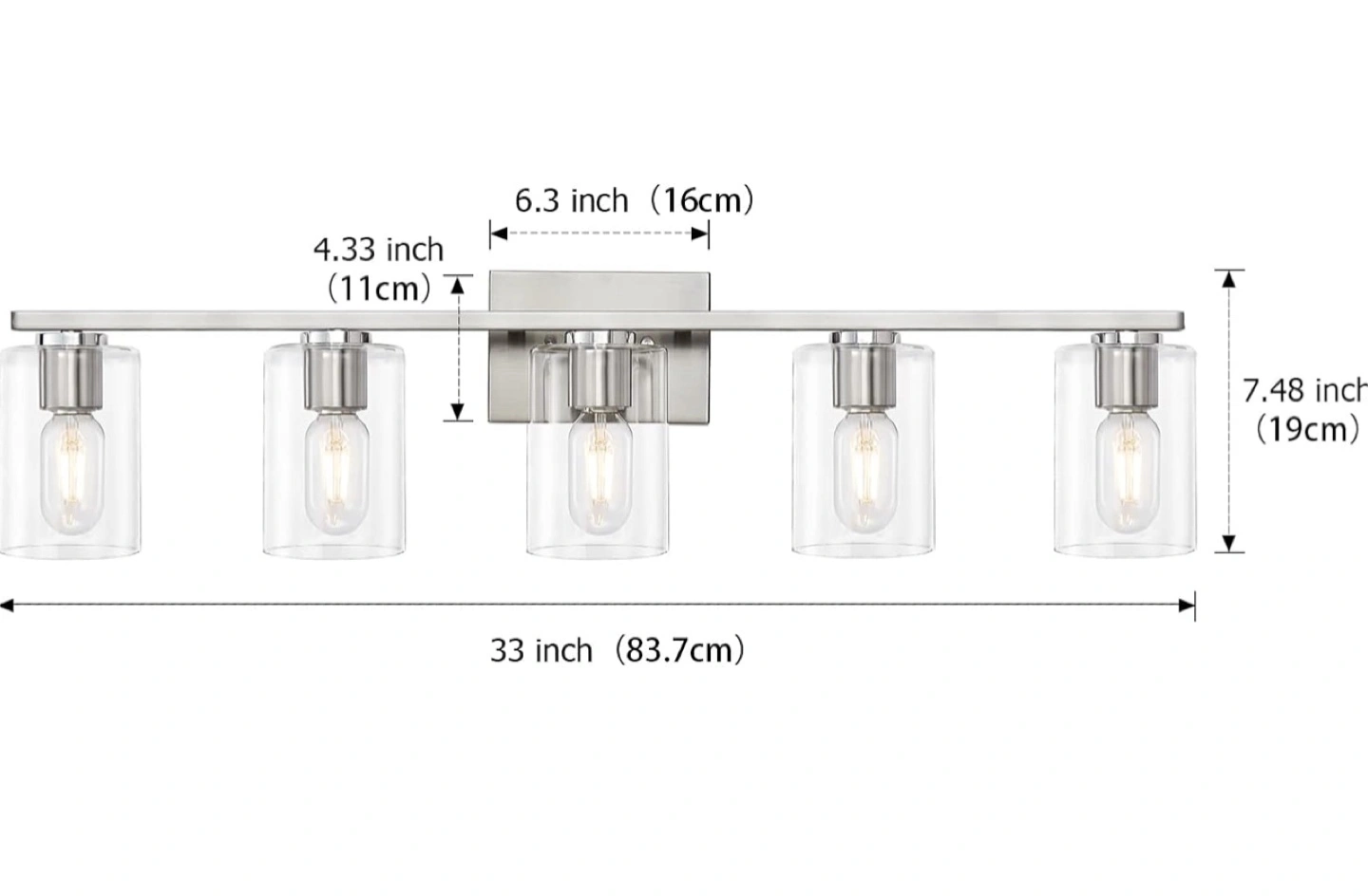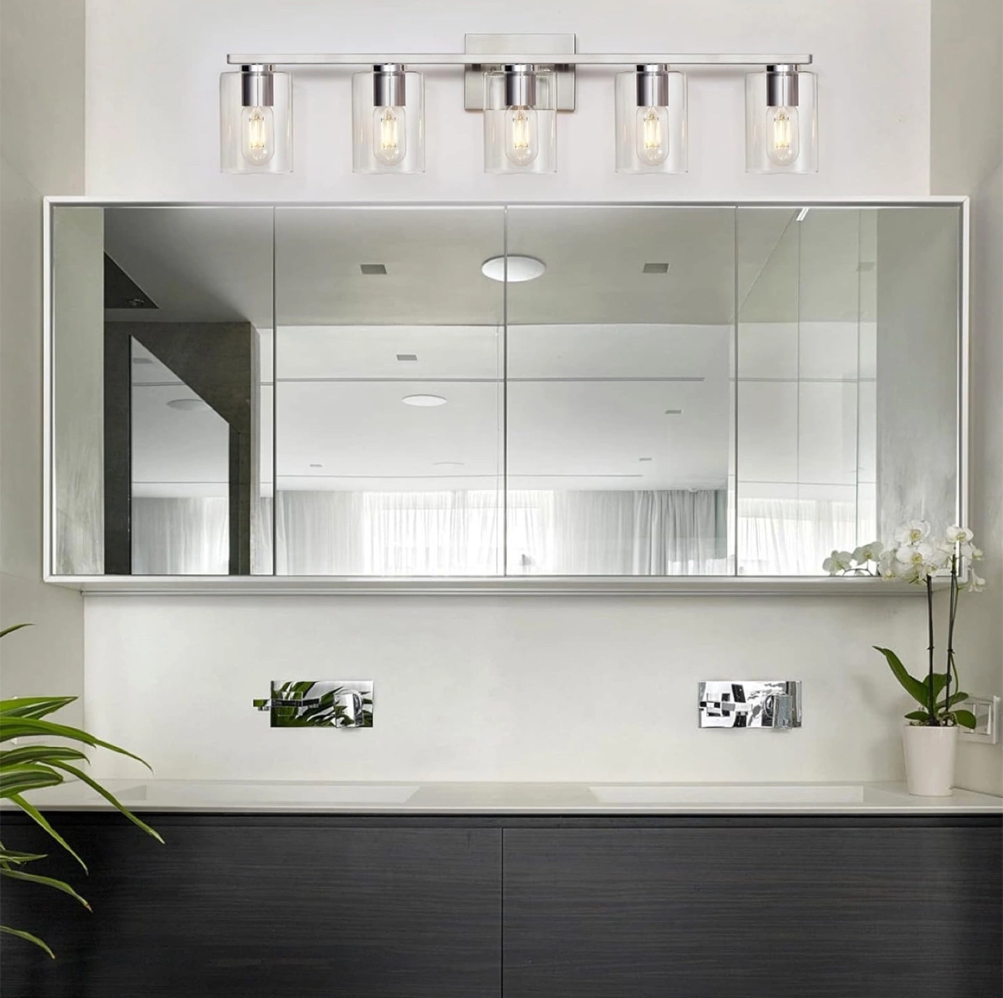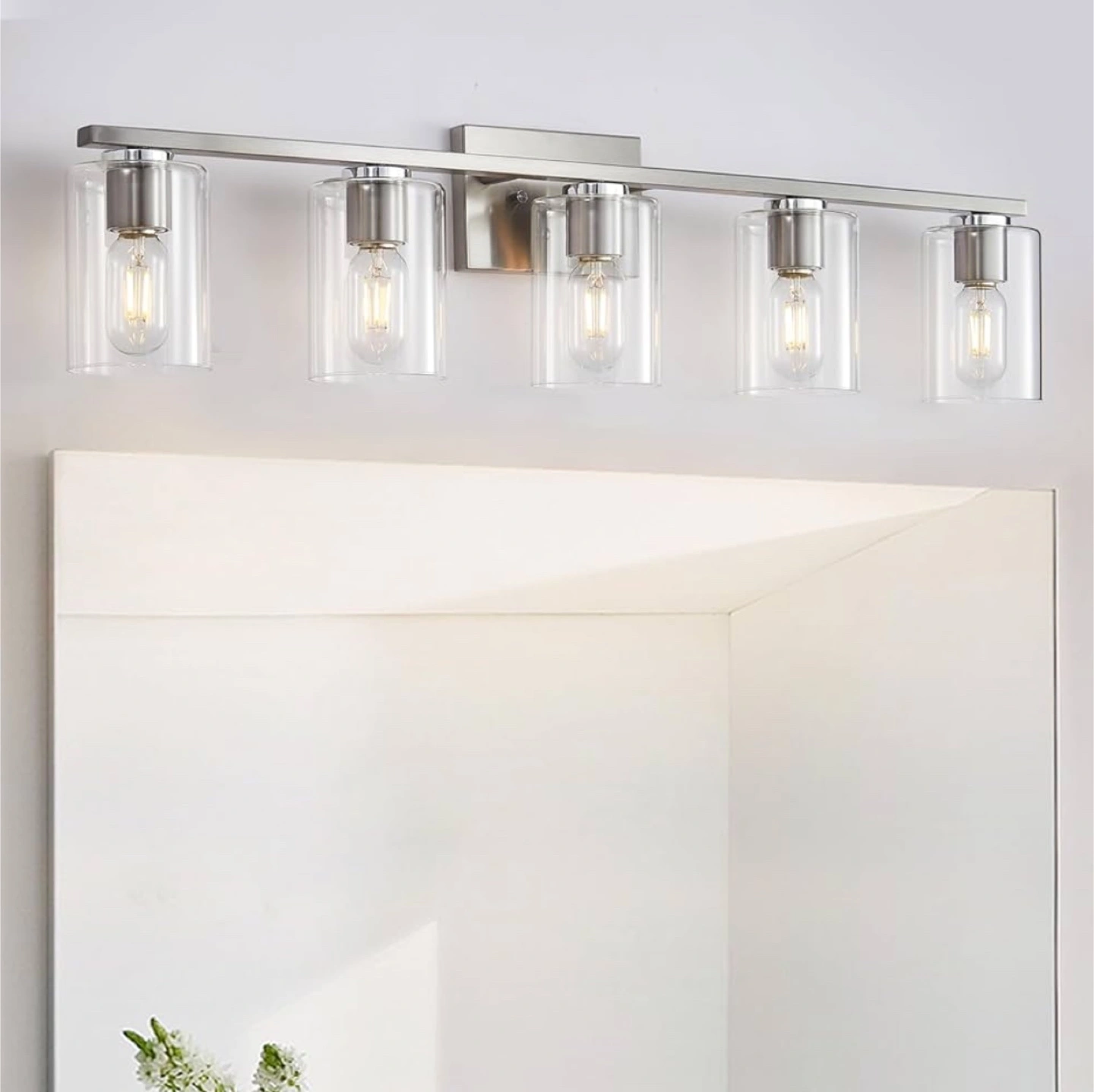 DRNANLIT Modern Bathroom Light Fixture BNIB 5-Light Vanity Light with Clear Glass Shade for washroom/ vanity area (Brushed Nickel, 5-Light) See additional pics for measurements