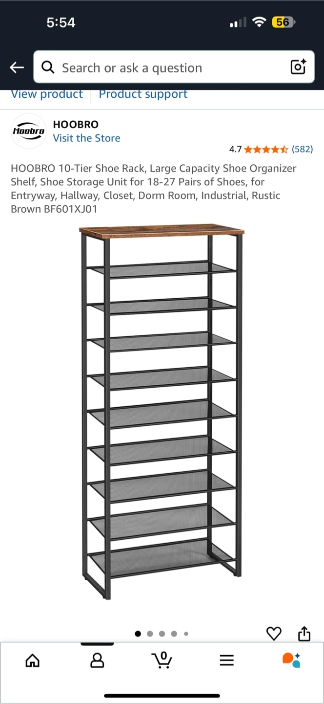 Selling a HOOBRO 10-Tier Shoe Rack in excellent condition! It's a large capacity shoe organizer shelf, perfect for your entryway, hallway, closet, or dorm room. The rustic brown BF601XJ01 model is industrial and stylish. It can hold 18-27 pairs of shoes. Dimensions are approximately 23.6" wide, 62.6" high, and 11.2" deep