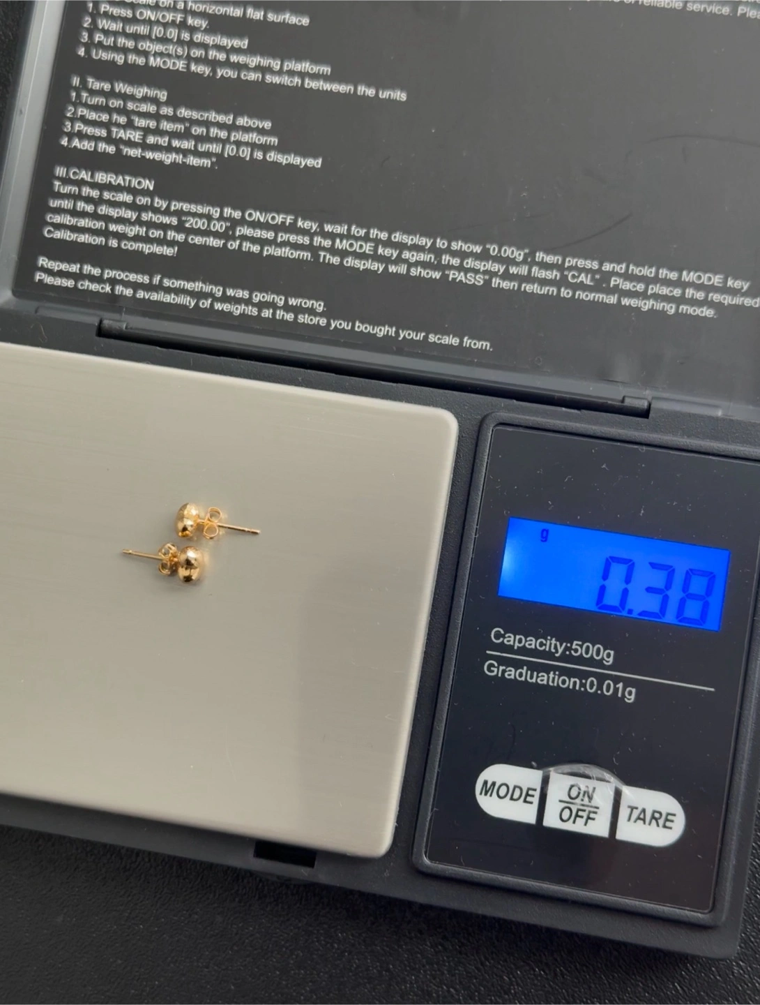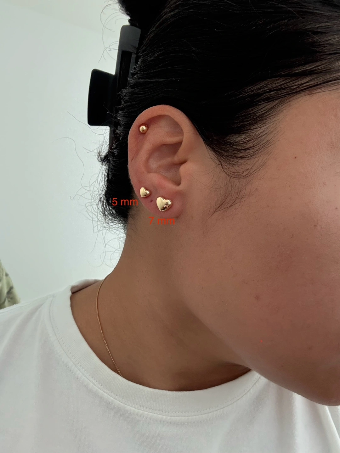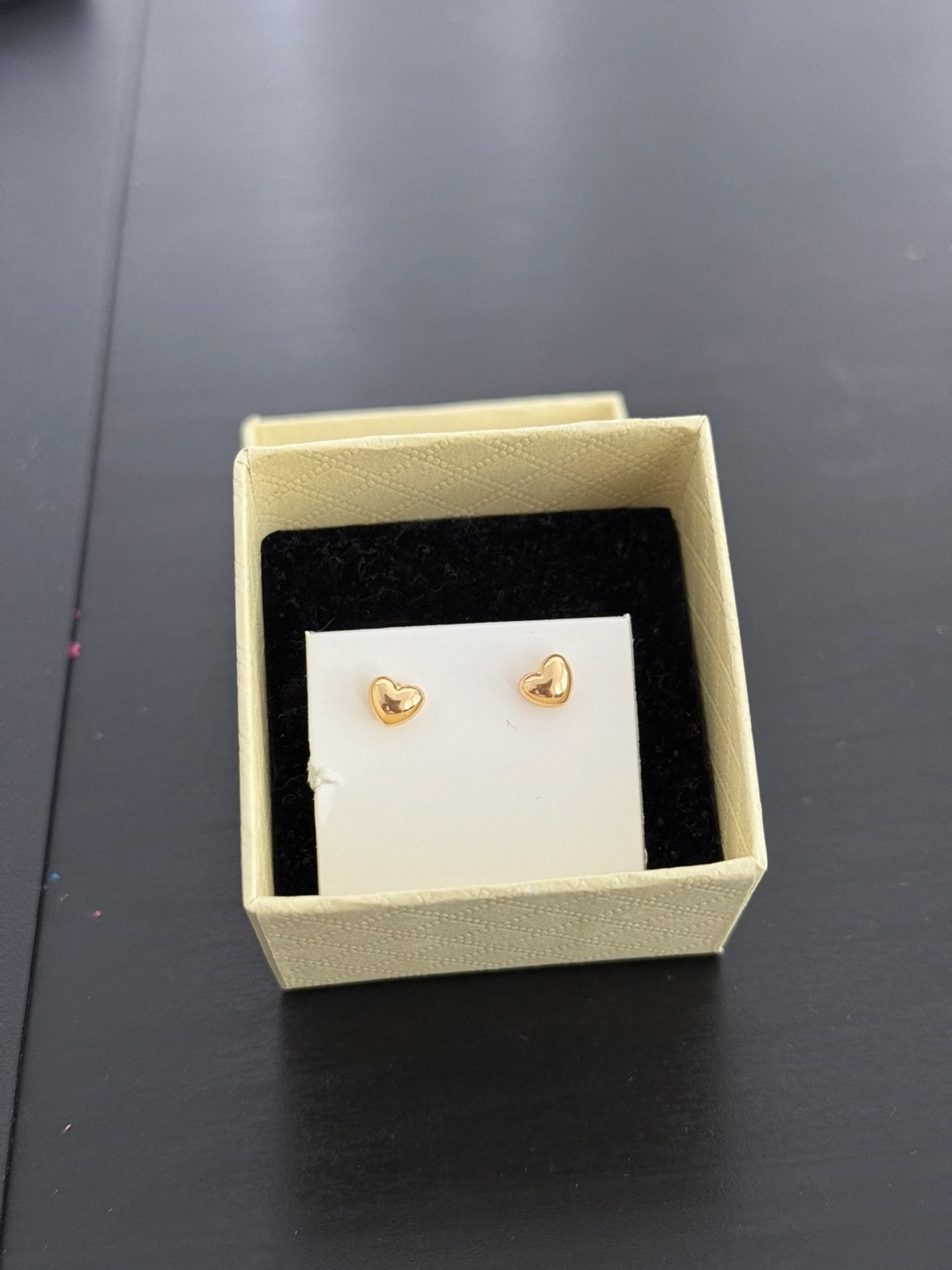 Material: Solid K18 Yellow Gold (K18 stamped) Shape: Heart Size: Approx. 5mm Weight: Approx. ~0.38g Backing: K18 YG Ear Nut Origin: Japan Gold