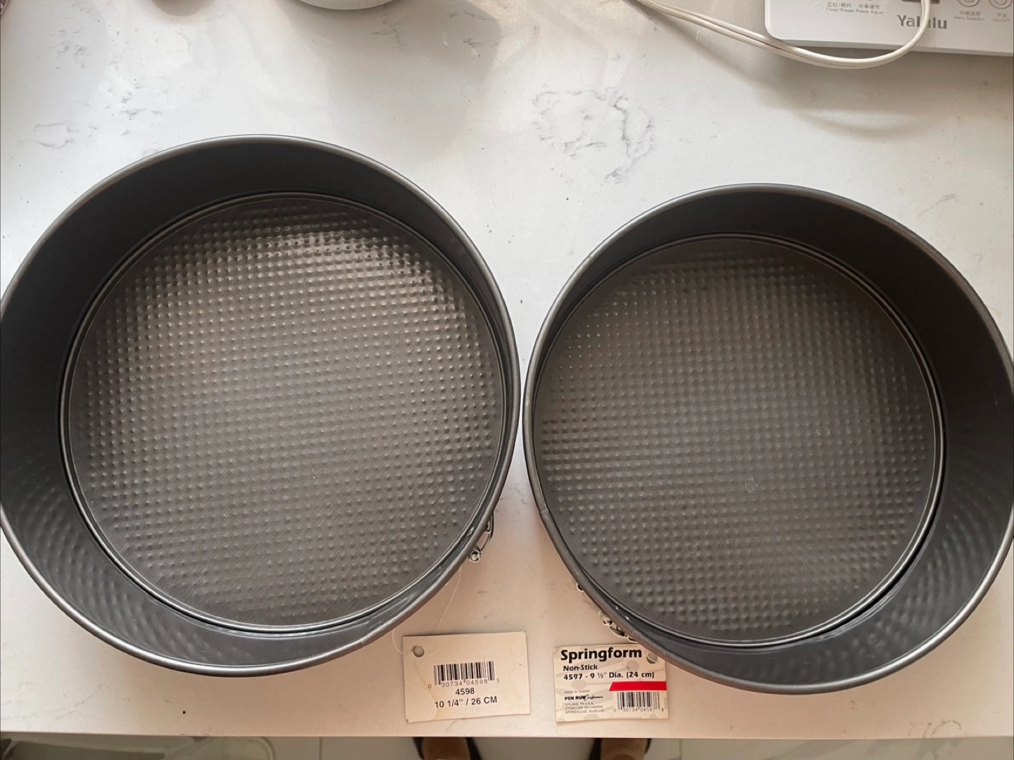 Selling two springform cake pans. One is 9 1/2" (24 cm) and the other is 10 1/4" (26 cm). They are non-stick, making baking and cleanup a breeze!