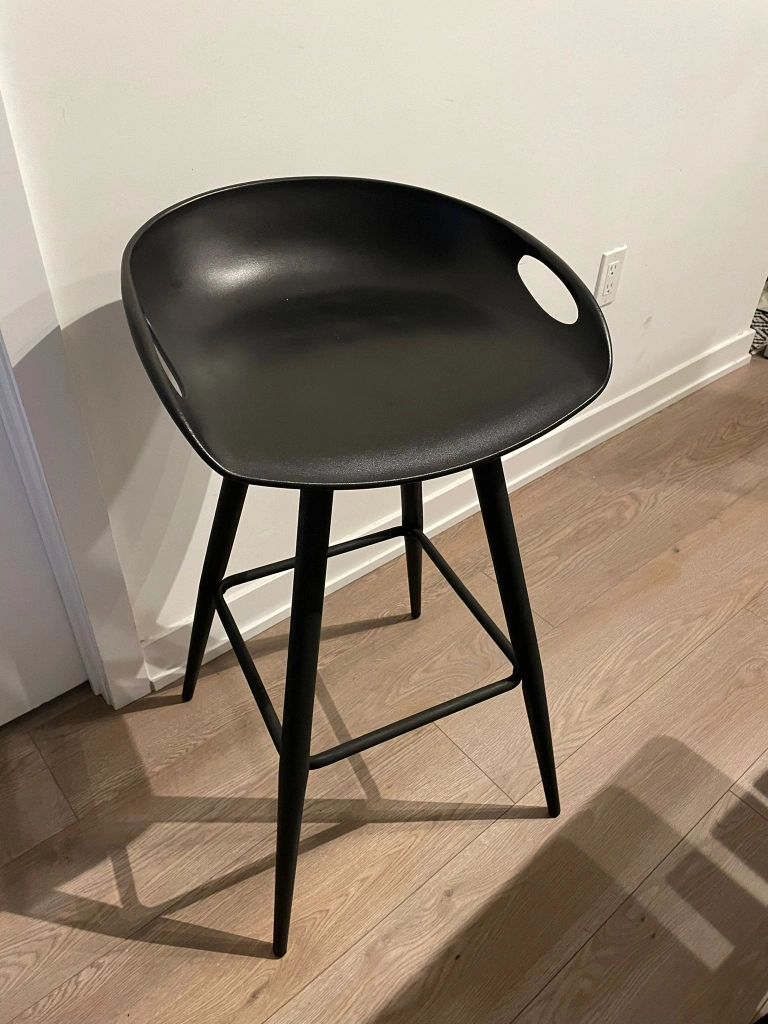 Selling a black bar stool and table set. This set would be perfect for a kitchen island or a small dining area. It's in great condition and ready for a new home.