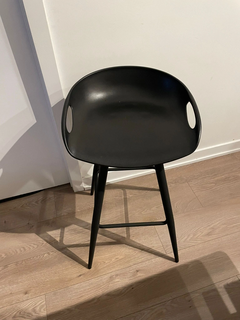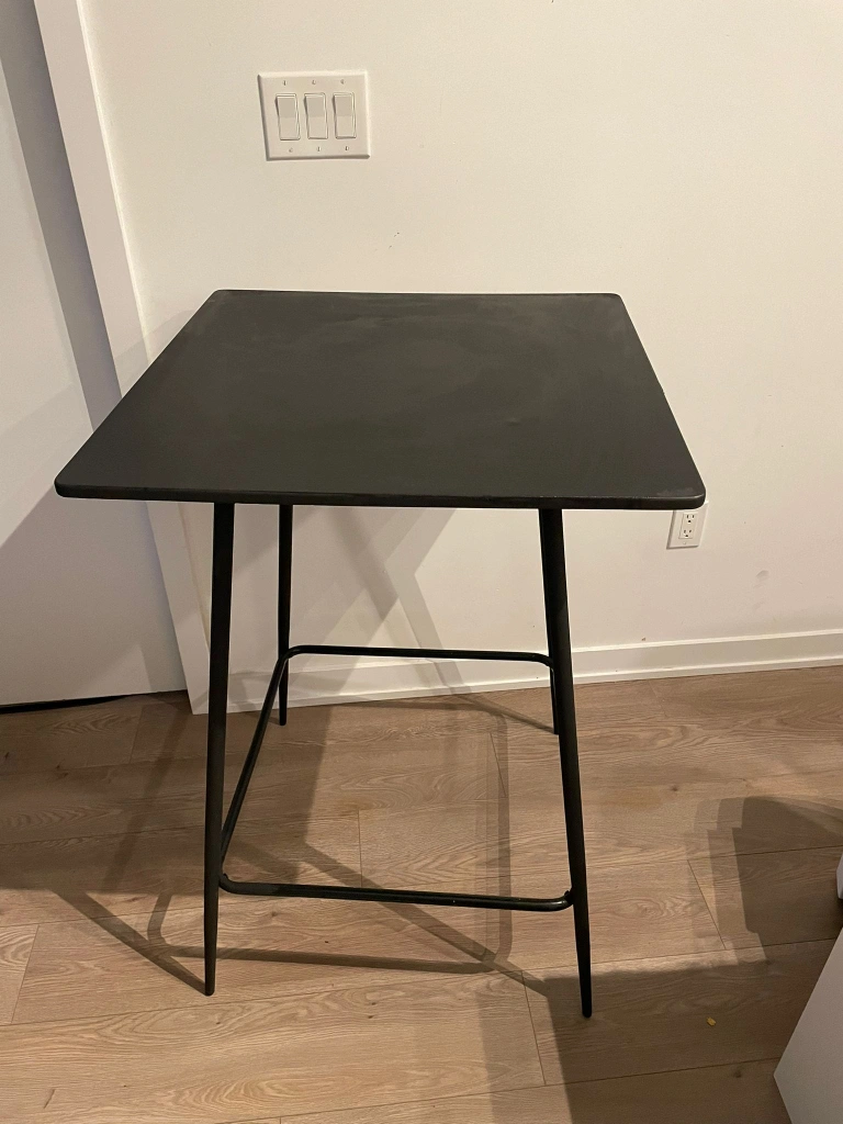 Selling a black bar stool and table set. This set would be perfect for a kitchen island or a small dining area. It's in great condition and ready for a new home.