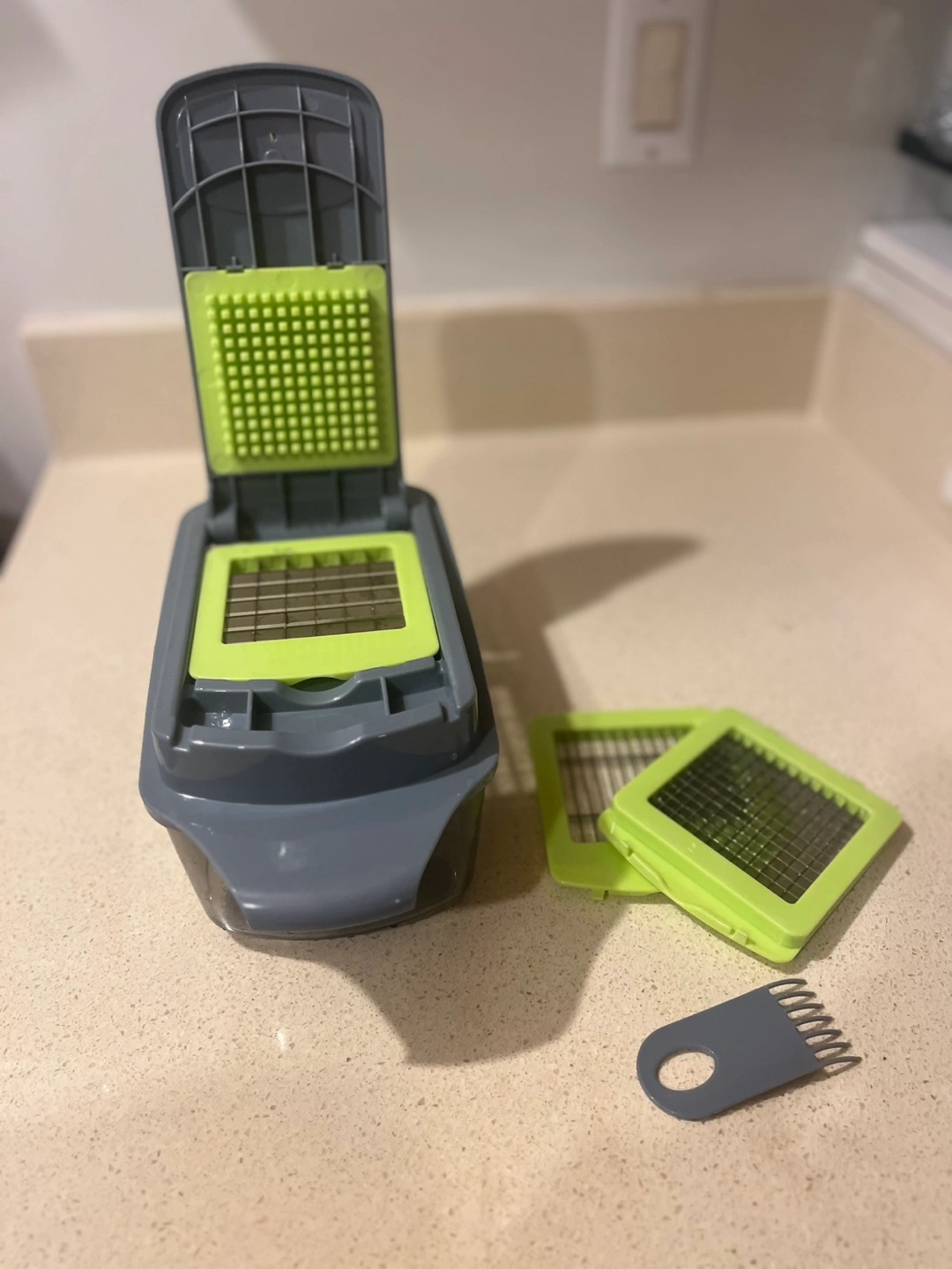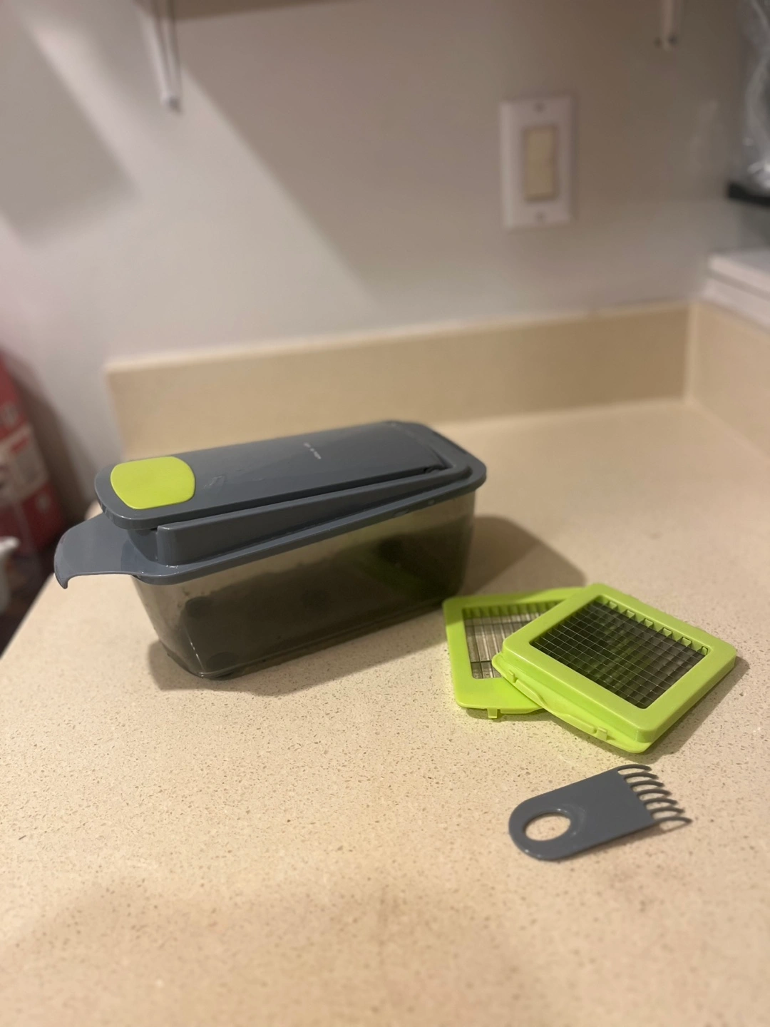 Handy vegetable chopper with a built-in container. Comes with multiple interchangeable blades and a cleaning tool โ perfect for chopping onions, potatoes, peppers, and more in seconds. In great condition and works perfectly. Easy to clean and store. ๐ Pickup in Downtown Vancouver Cash or e-transfer is fine.