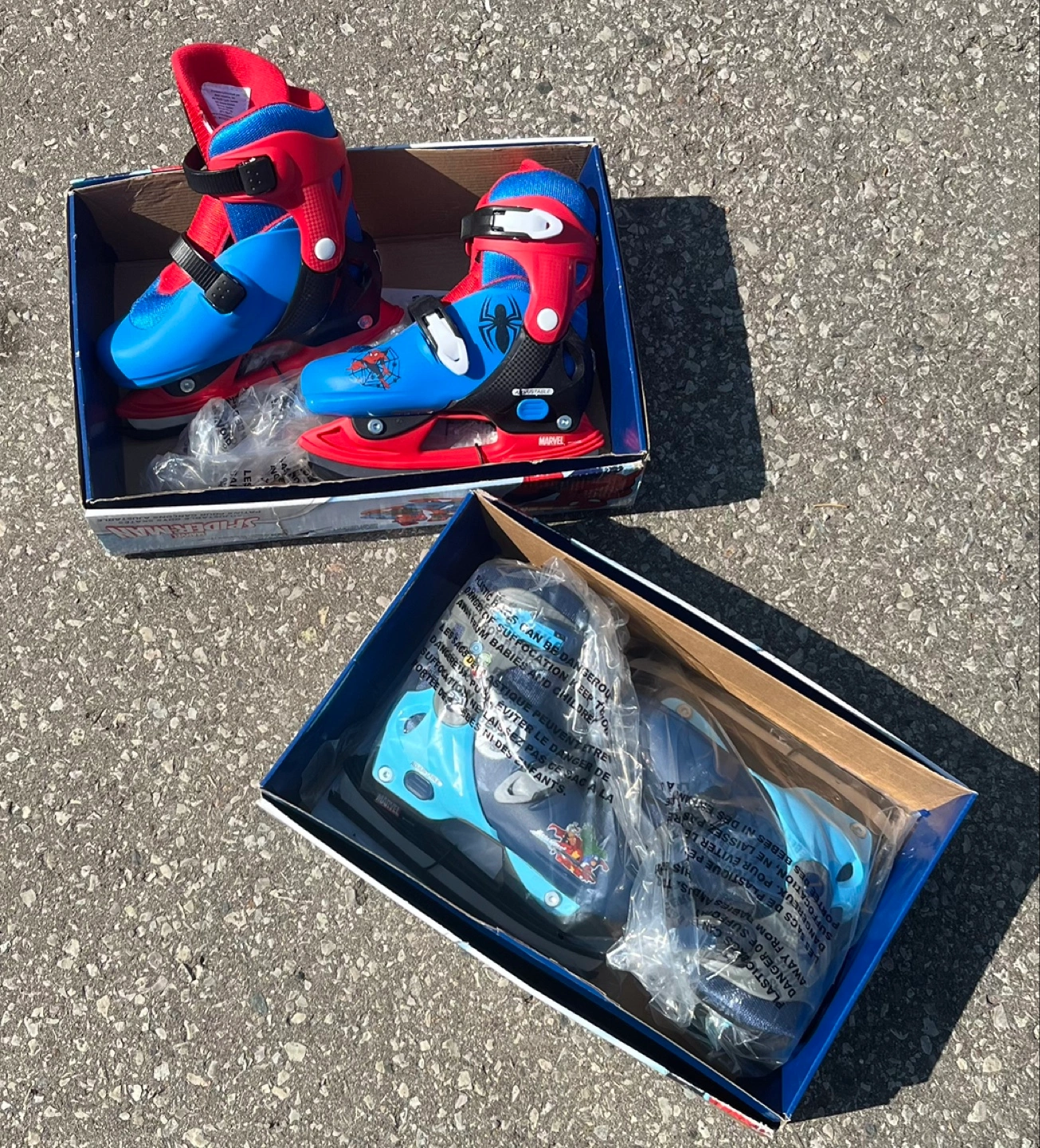 Selling two pairs of Marvel Spider-Man and Avengers ice skates! They are size Y12-2 and feature a comfortable padded liner. The skates have durable molded plastic boots and adjustable buckles.
