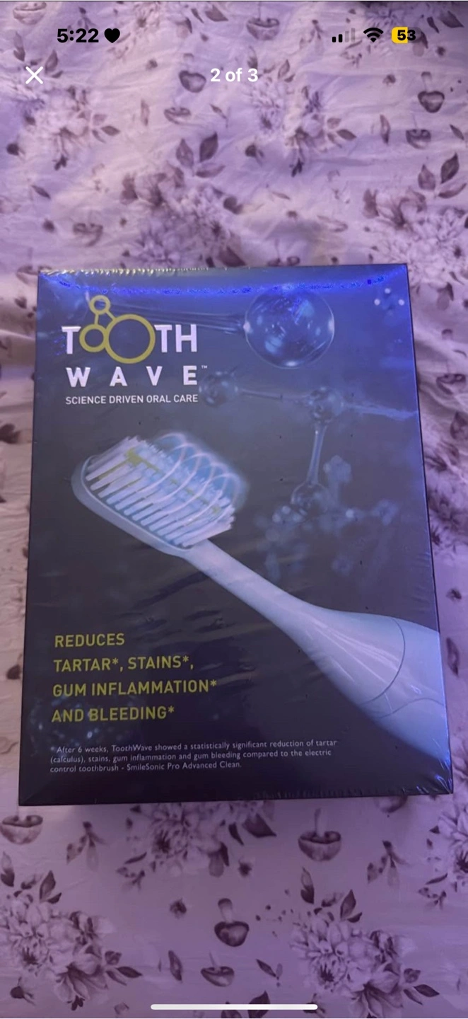 35Selling a brand new Silk'n ToothWave electric toothbrush! It's still in its original packaging and has never been opened. This toothbrush uses DentalRF technology. It reduces tartar, stains, gum inflammation and bleeding. Includes brush heads (extra soft, small and large), charging stand, and user manual
