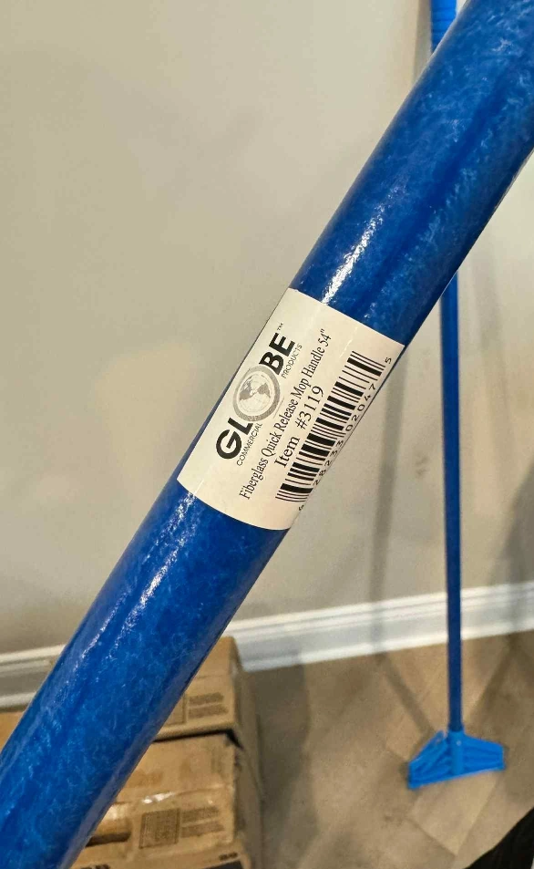 Selling a Globe Fiberglass Quick Release Mop Handle, 54 inches in length. This mop handle is sturdy and ready to help with your cleaning needs