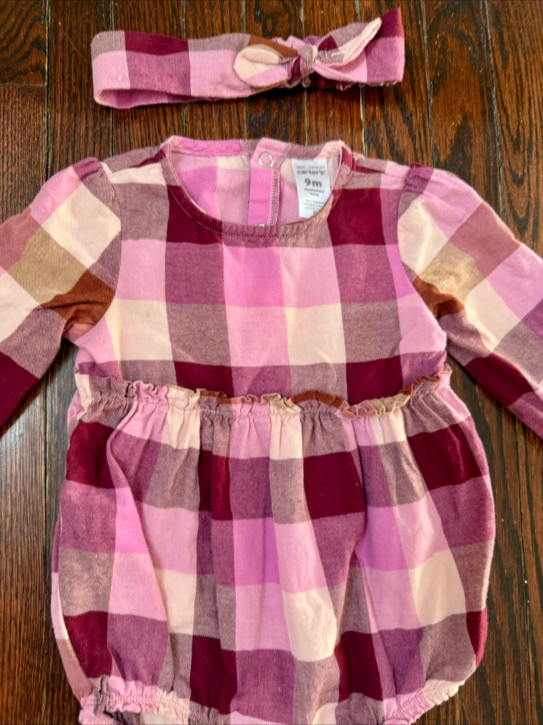 Light yellow dress from GAP, only worn twice, size 6-12mts. Carter's romper, worn a few times but in great condition, no fuzz, size 9M. Smoke-free home. Free hangers.