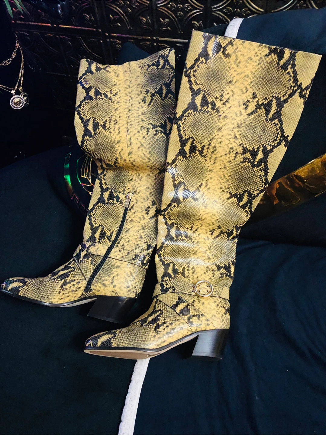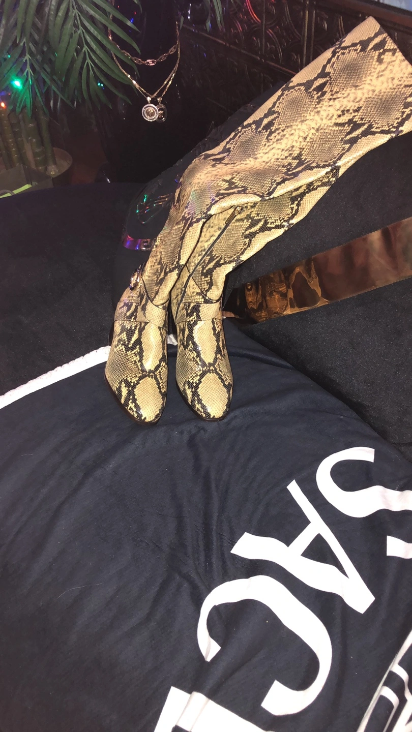 Gorgeous Jimmy Choo heeled boots with a striking python print! These boots are a size 39 and feature a sleek design with a comfortable heel height. Perfect for adding a touch of luxury to any outfit