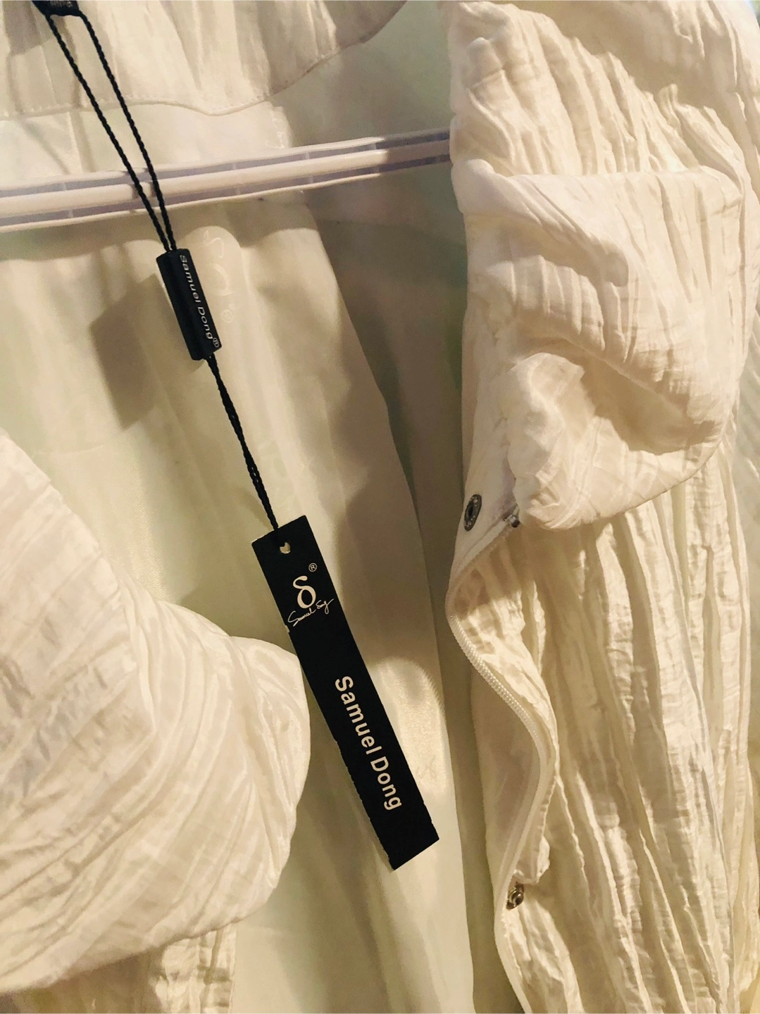 9Selling a beautiful white coat from Samuel Dong! It's in great condition and features a unique textured design. Perfect for adding a touch of elegance to your wardrobe