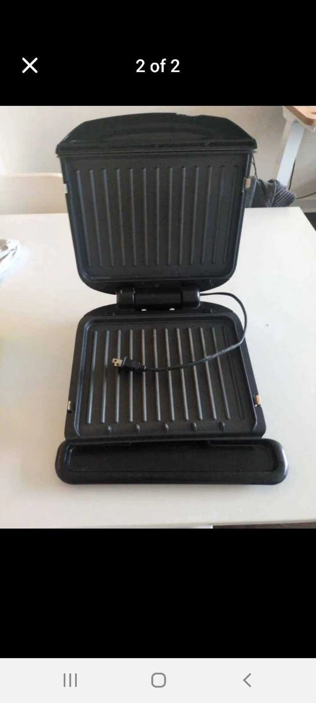Selling a George Foreman grill, perfect for quick and healthy meals. This grill is in good, used condition and ready to use. It heats up quickly and is easy to clean. Brand: George Foreman, Type: Electric Grill, Colour: Black, Non-stick coating for easy cleaning. Asking $20. This ad is live, so yes, it's still available!