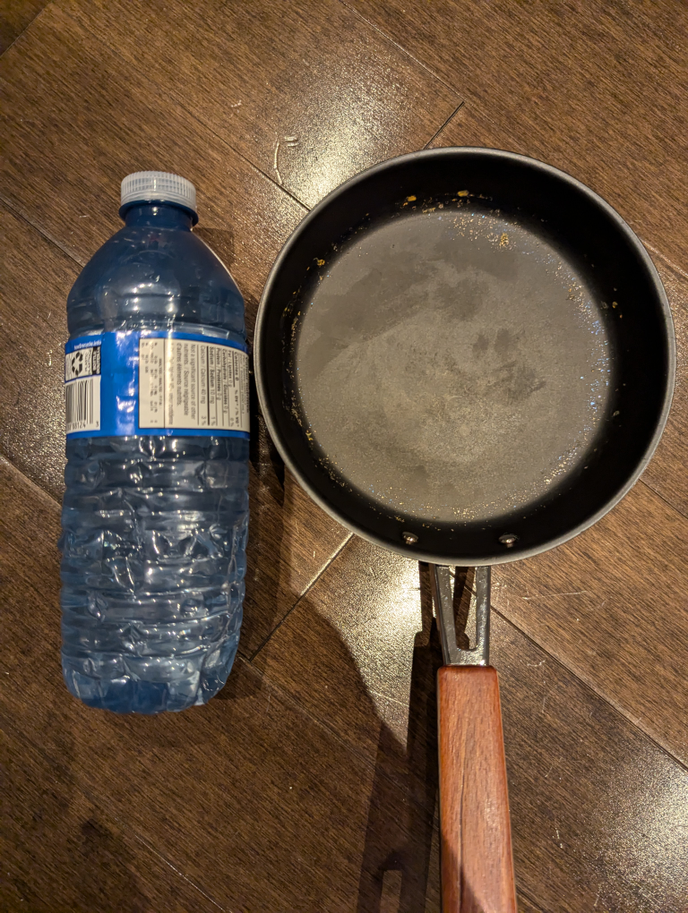 Giving away a used frying pan. It has a wooden handle. Good for frying eggs. It shows signs of use, as seen in the photos, but still has plenty of life left.