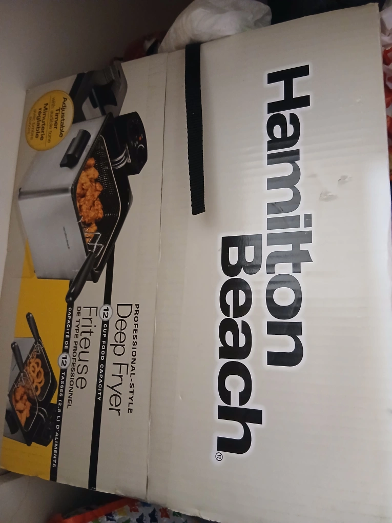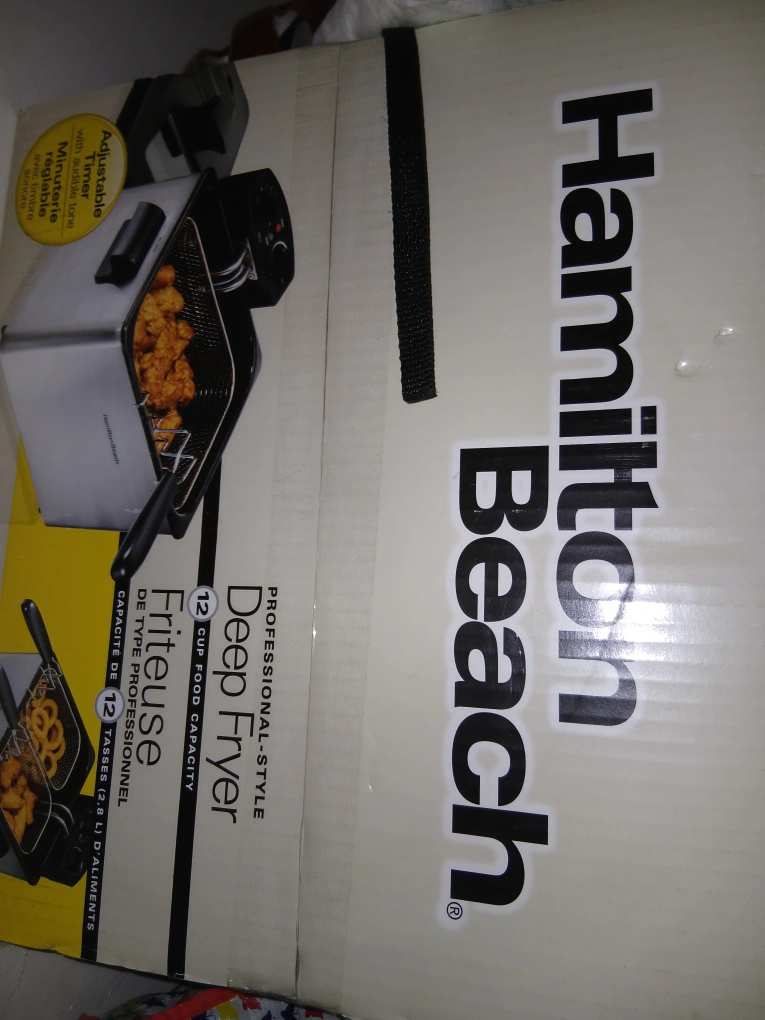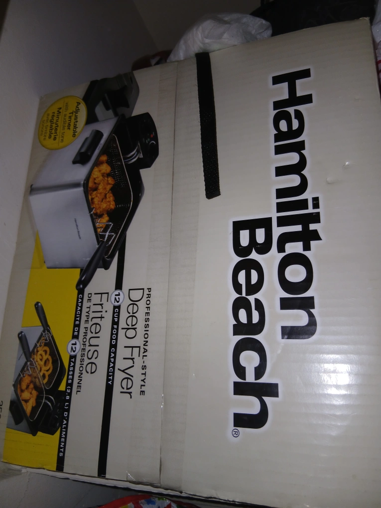 brnad new never been used with the box, Selling a Hamilton Beach Professional-Style Deep Fryer. It has a 12 cup capacity and an adjustable timer, selling it for $35
