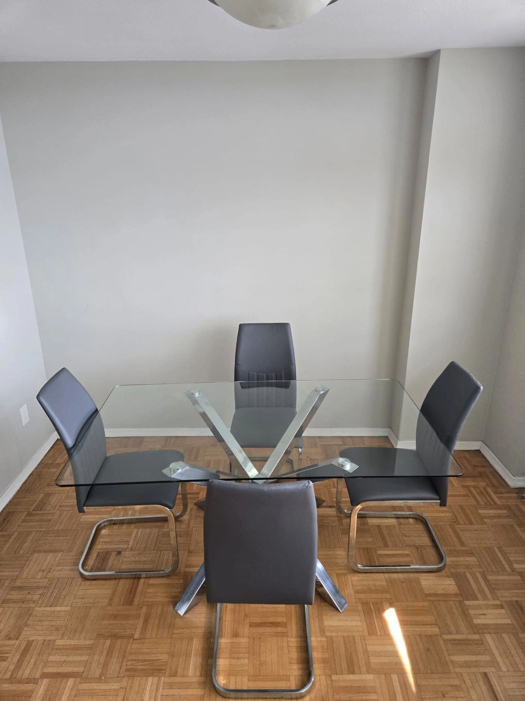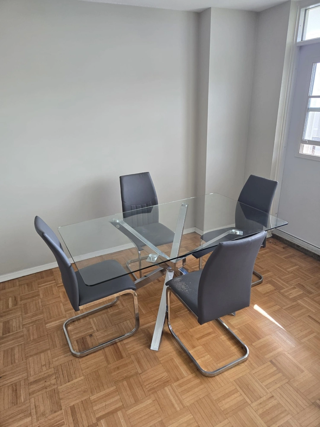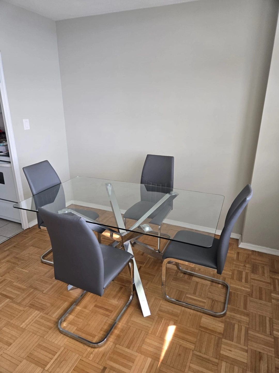 4 gray dining chairs β 3 in very good condition, 1 gently worn
