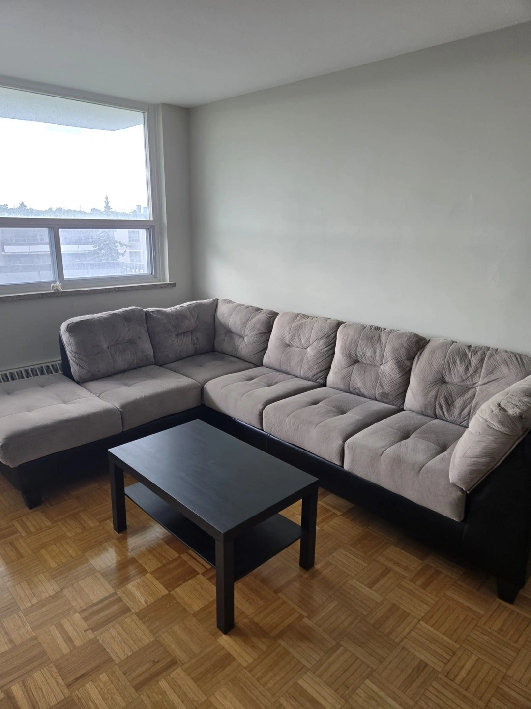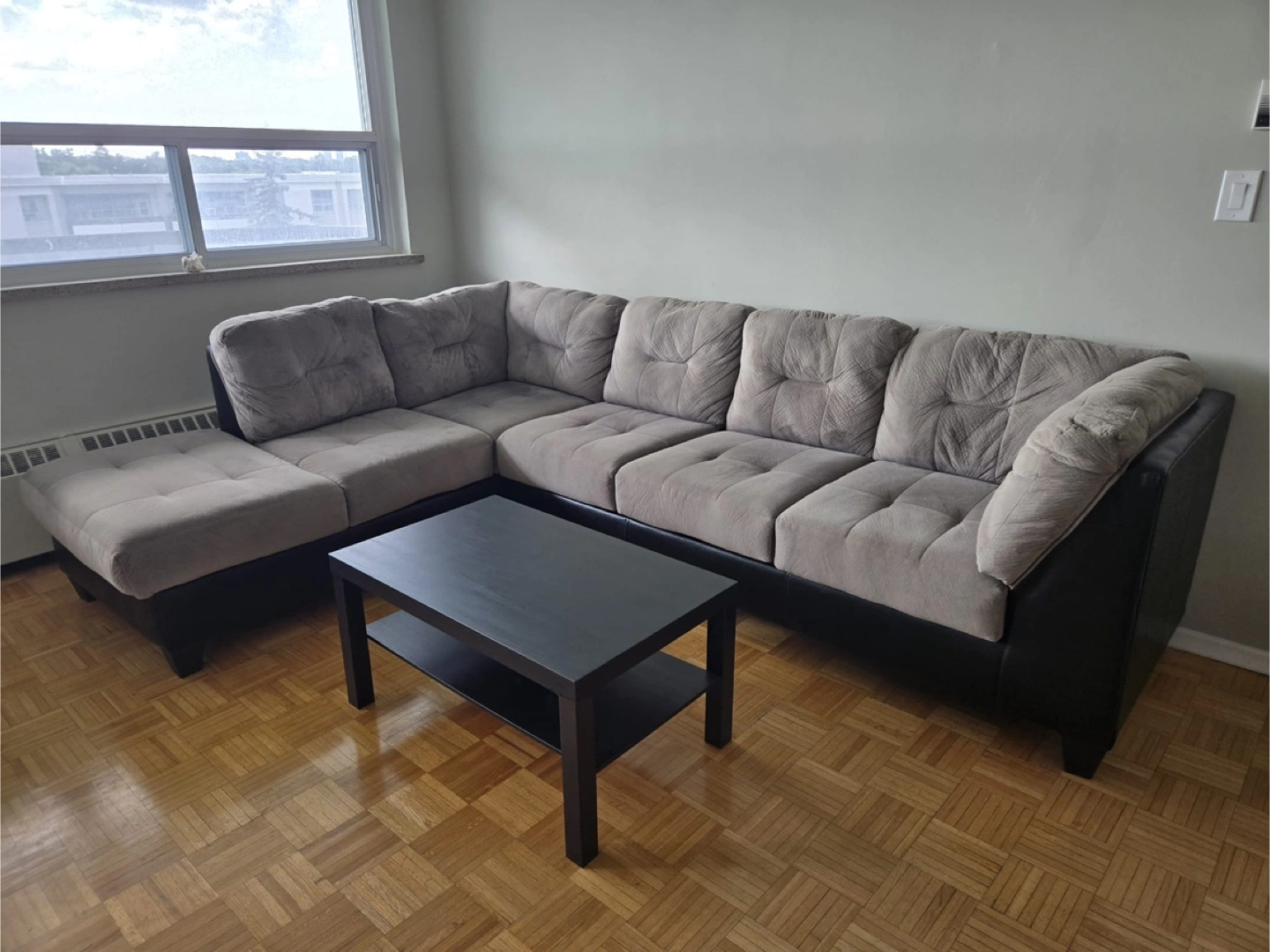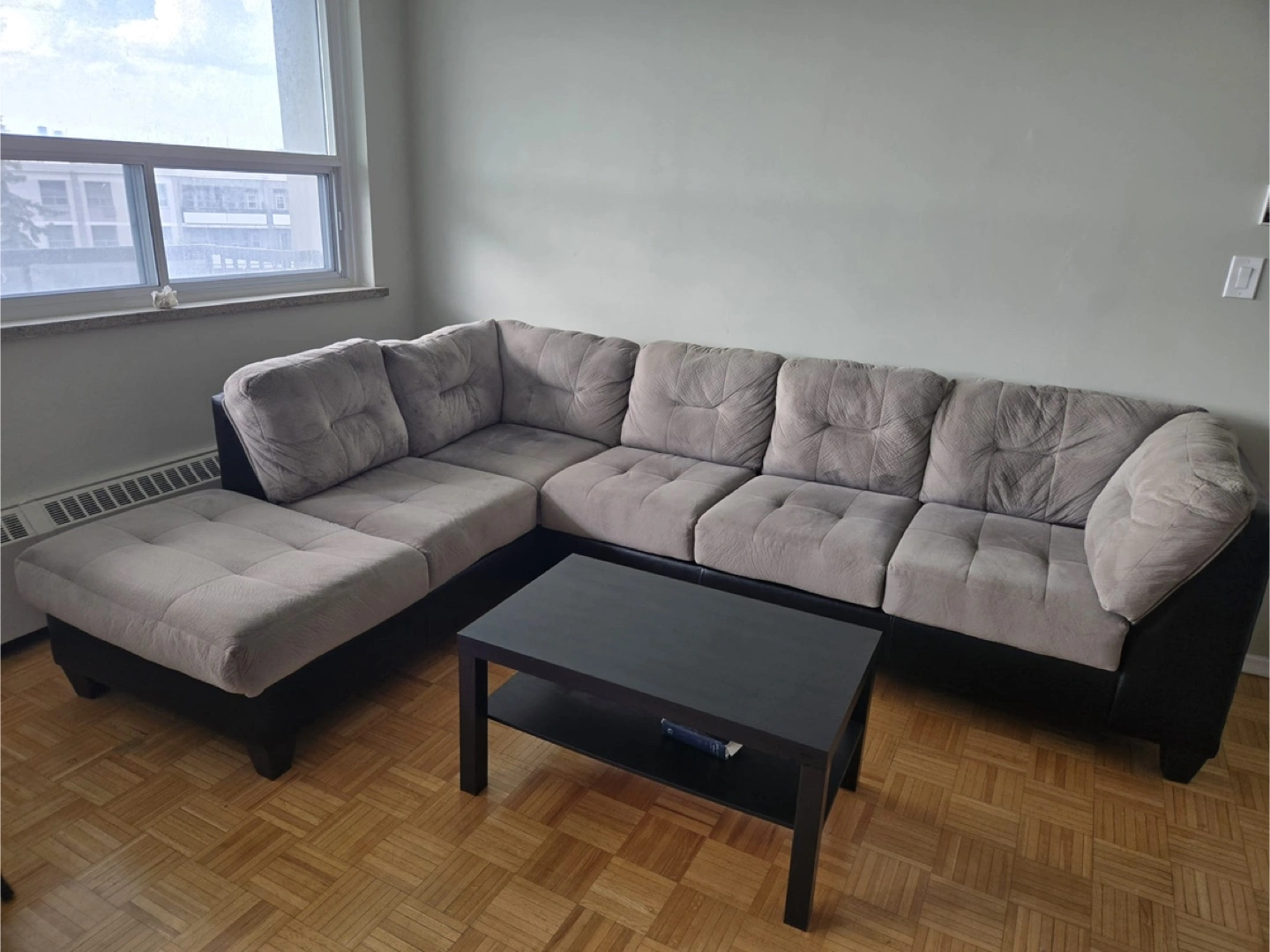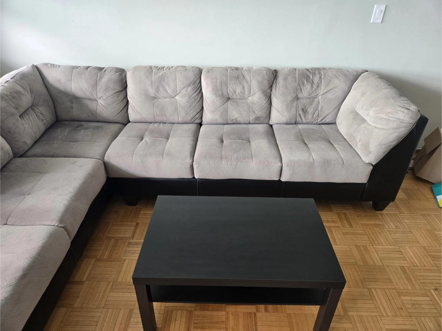 L-shaped sectional sofa (6-seater) in gray fabric β super clean, no scratches, spotless!