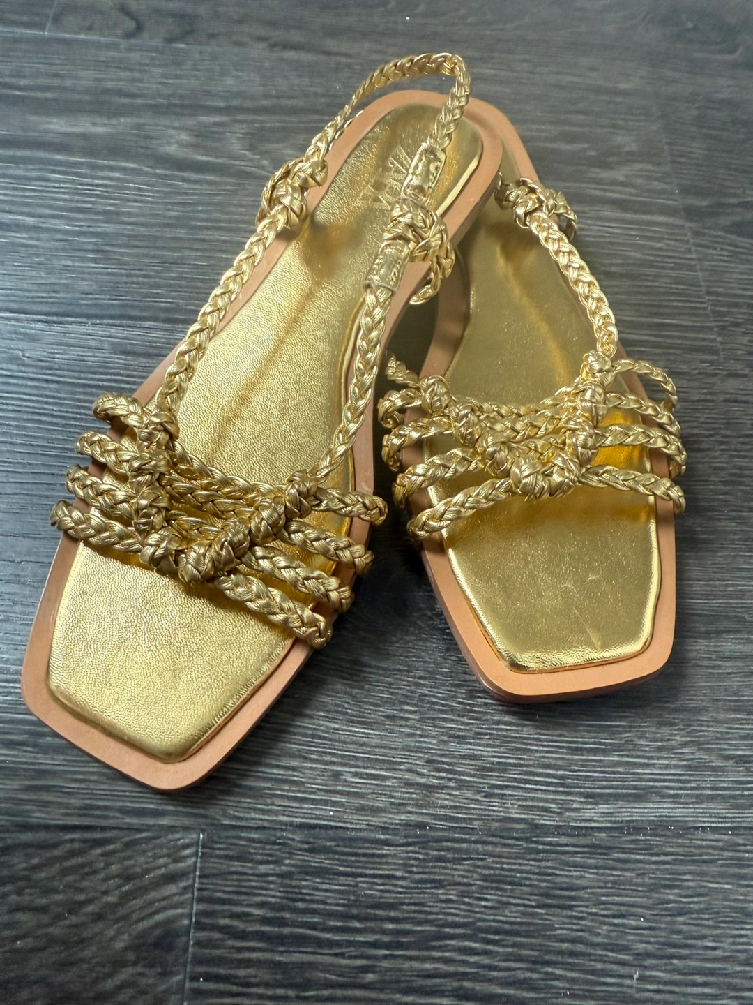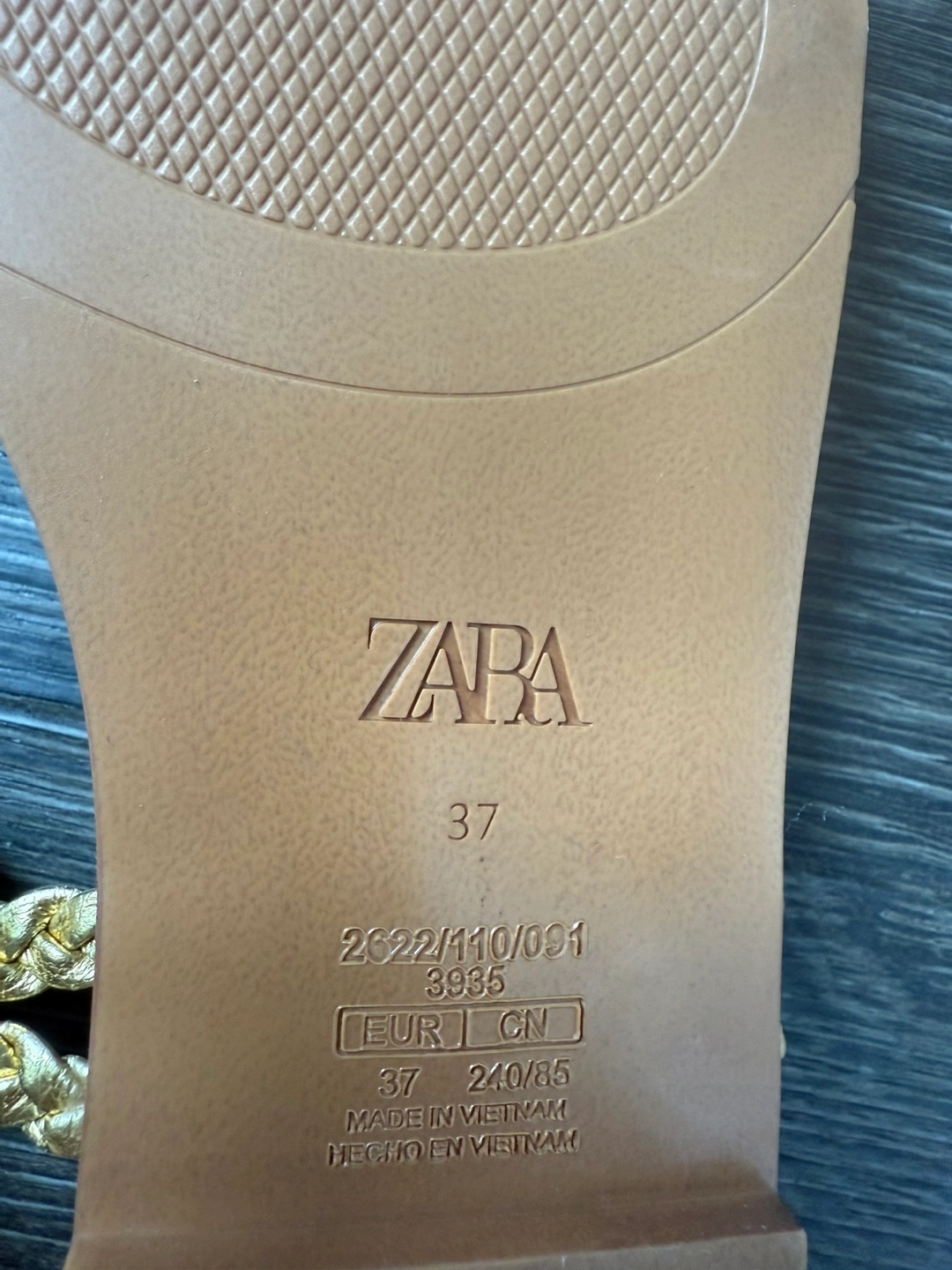 Selling a pair of Zara gold braided sandals in size 37. They're in great condition like new used one time and would be perfect for dressing up any outfit!
