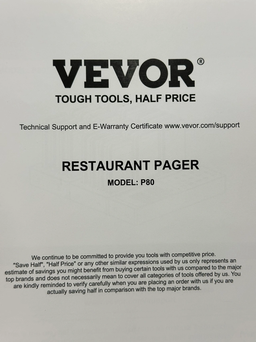 Selling a Vevor Restaurant Pager, model P80. It's in great condition and comes with the original box