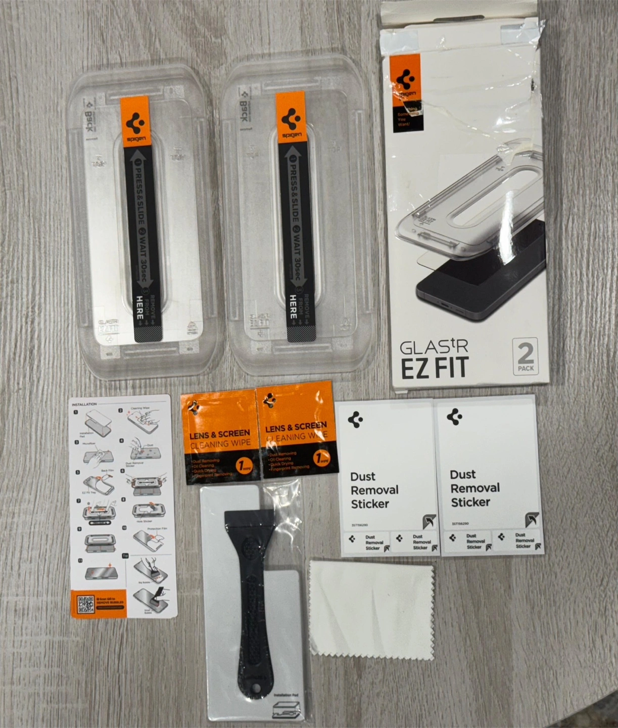 Selling a brand new Spigen Glas.tR EZ Fit screen protector for Galaxy series phones! It comes with two screen protectors, dust removal stickers, lens and screen cleaning wipes, and an installation pad. Everything you need for a perfect, bubble-free application is included!
