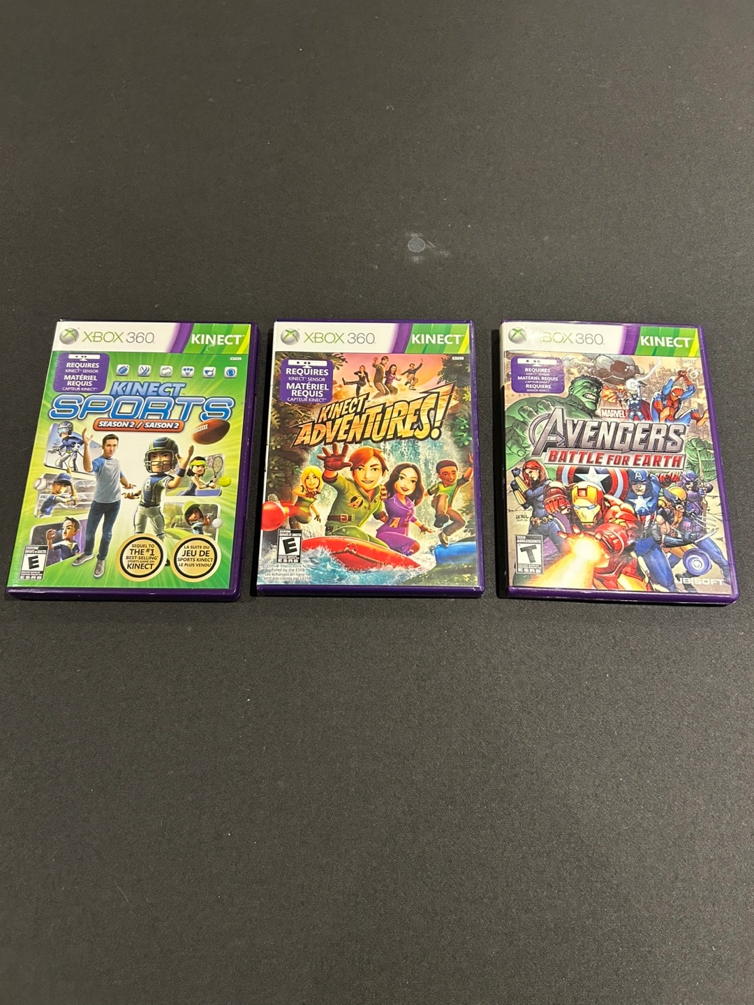 Selling a bundle of Xbox 360 Kinect games! Includes Kinect Sports Season 2, Kinect Adventures, and Avengers Battle for Earth. All games are in good condition and ready for some fun, active gameplay