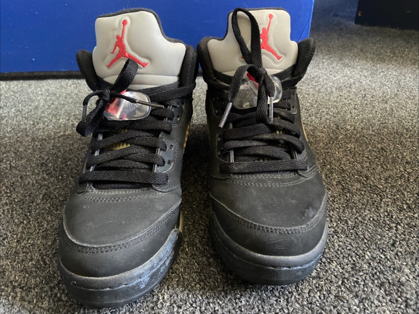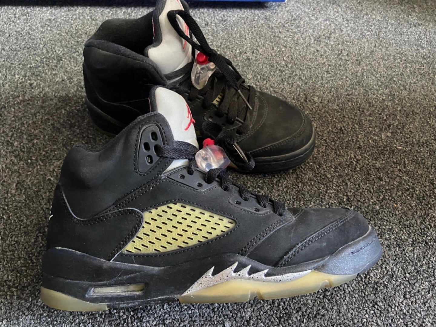 Just in time for school! Selling a pair of Air Jordan 5s in black and metallic silver. They're in very good condition, pick up in Waterdown. Size 5Y.