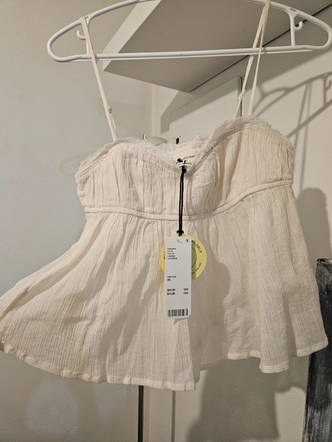 A cute cami top from Urban Outfitters! It's in great condition. The fabric has a nice texture and it's a light, airy piece, perfect for layering or wearing on its own during warmer weather.