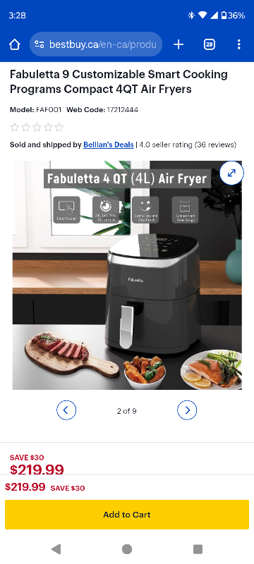 Selling a Fabuletta 4QT (4L) Air Fryer. It features 9 customizable smart cooking programs. This compact air fryer is perfect for cooking a variety of foods. Shake Reminder lets you know when to shake your food for cooking it more evenly and with crispy textures.