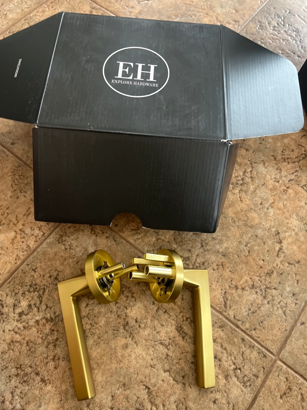 Selling a brand new Explore Hardware passage latch set! It comes with the original box and packaging. The latch has a backset of 2 3/4". This set is perfect for adding a modern touch to your doors