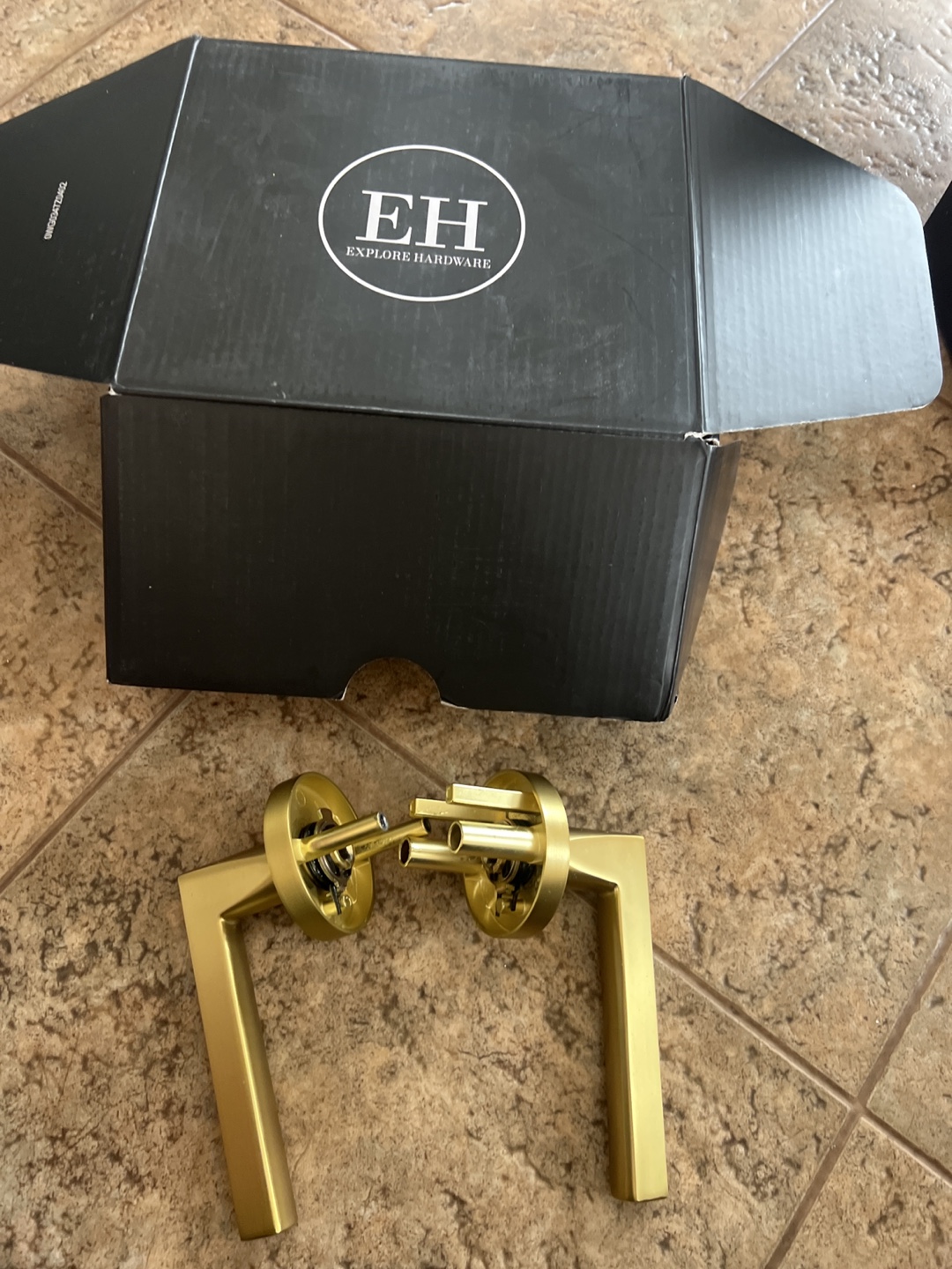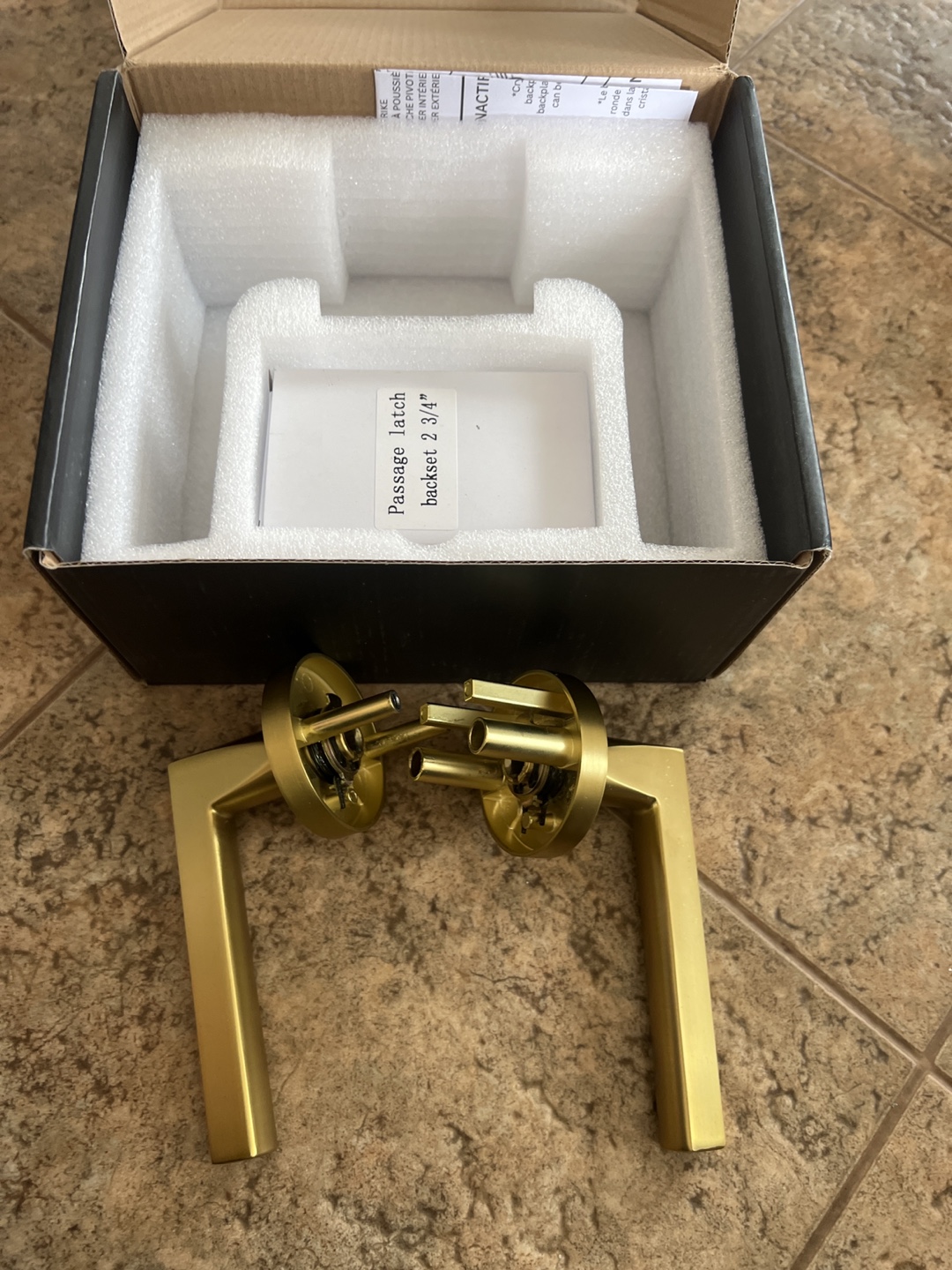 Selling a brand new Explore Hardware passage latch set! It comes with the original box and packaging. The latch has a backset of 2 3/4". This set is perfect for adding a modern touch to your doors