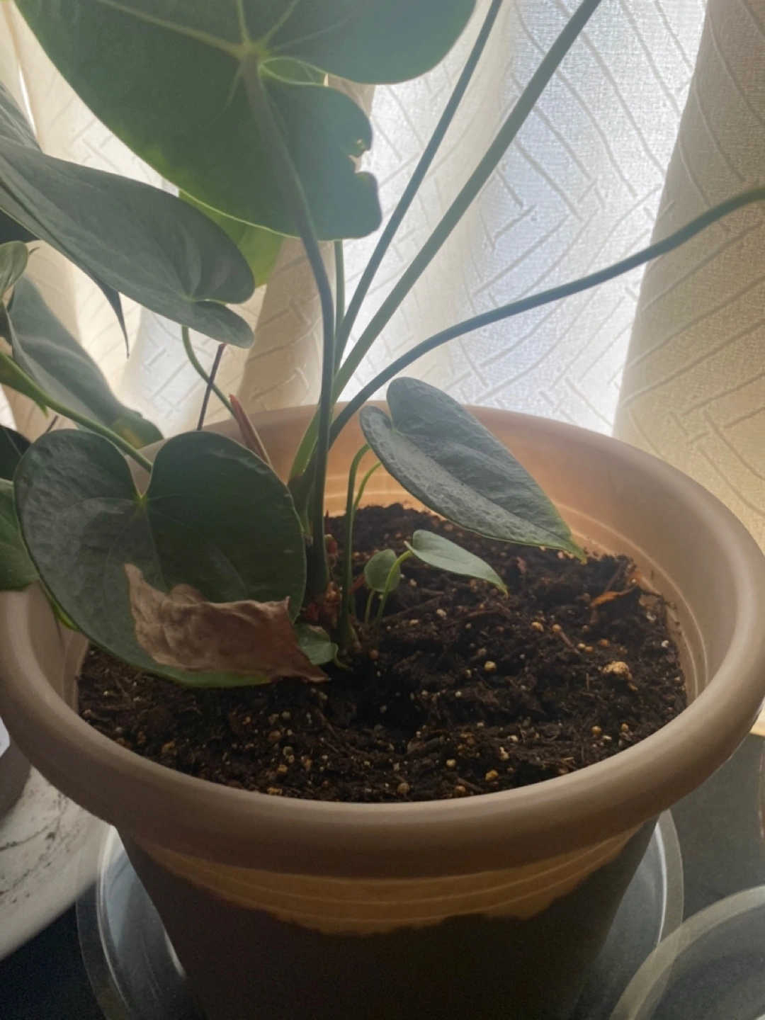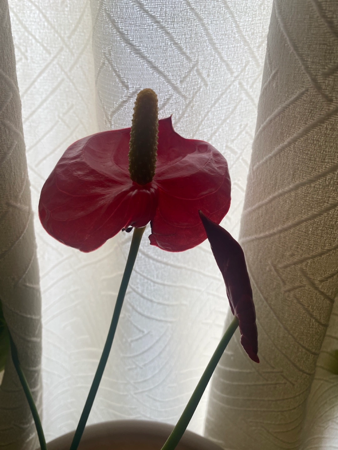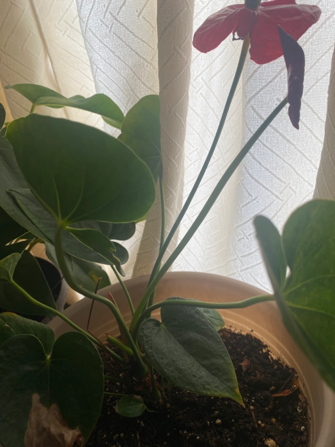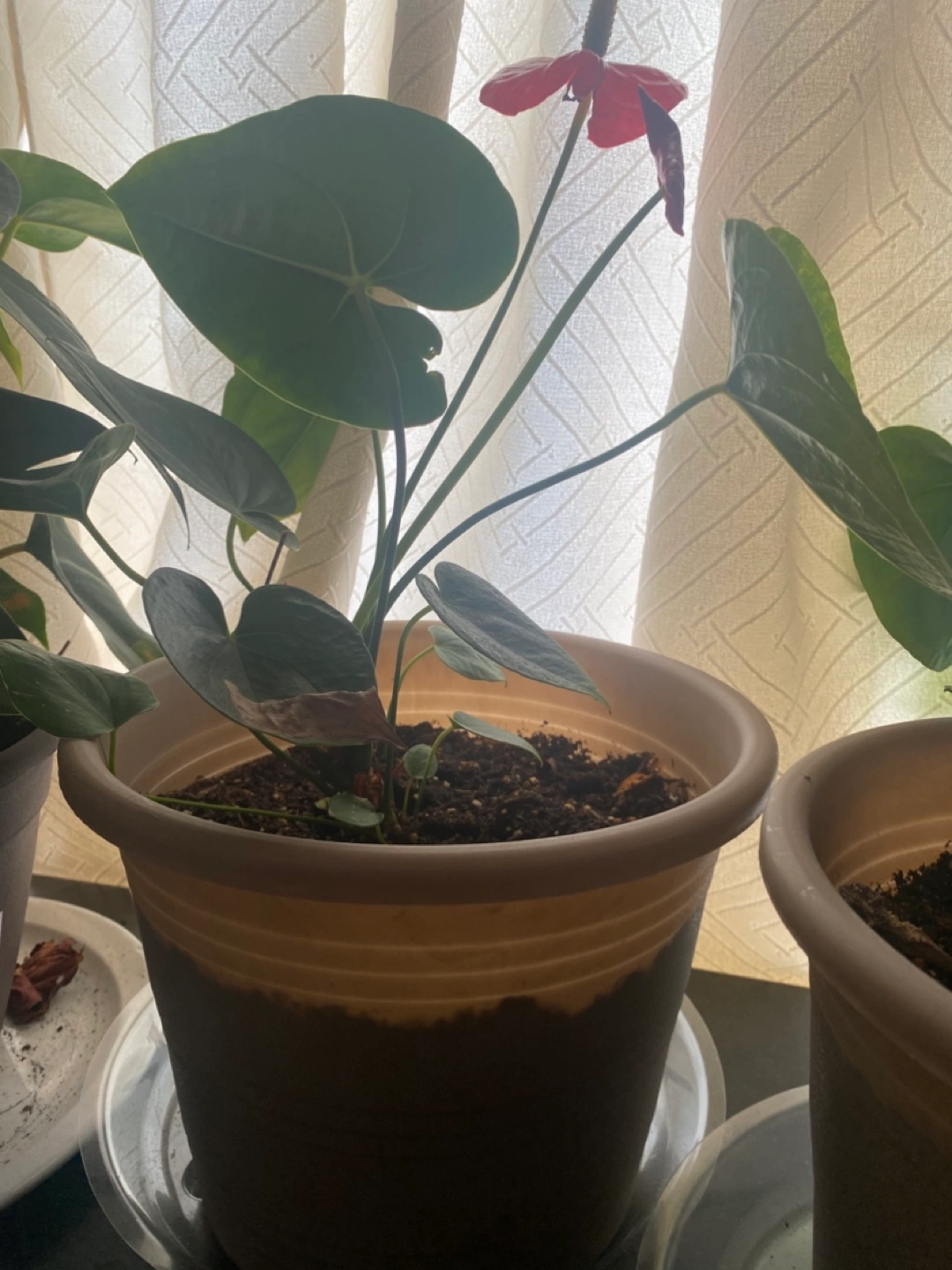 Selling an anthurium plant in a pot. It's a beautiful plant that would look great in any home!