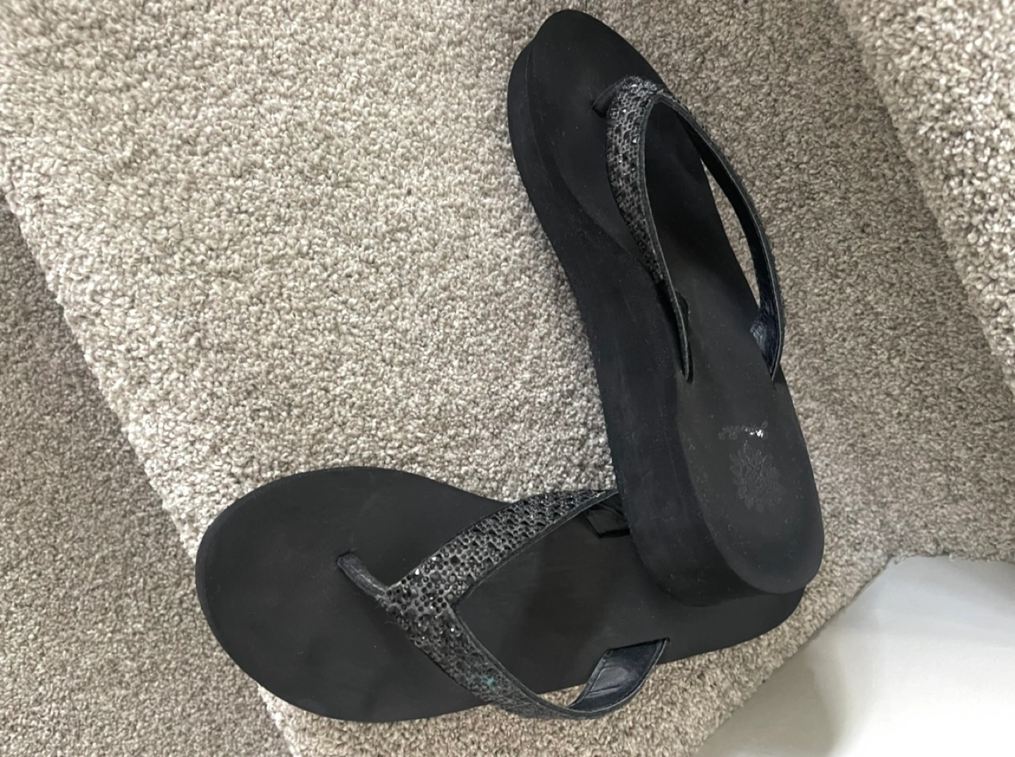 Comfy black flip flops from Yellow Box. They're a size 10 and have a bit of a platform. Great for summer! Slightly used inside.