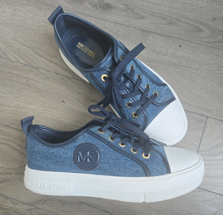 Get ready to step out in style with these Michael Kors Evy Denim Sneakers! These sneakers are a stylish addition to any wardrobe. They feature a denim exterior with the MK logo on the side, offering a blend of comfort and fashion. The platform sole adds a bit of height and a trendy touch. Perfect for casual outings or adding a sporty twist to your look!