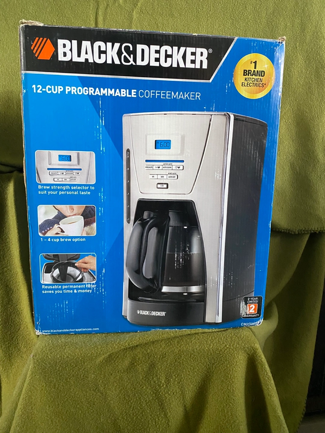 Selling a Black & Decker 12-cup programmable coffeemaker! It features a brew strength selector to suit your personal taste, and a 1-4 cup brew option. The reusable permanent filter saves you time and money. It's the #1 brand in kitchen electrics!