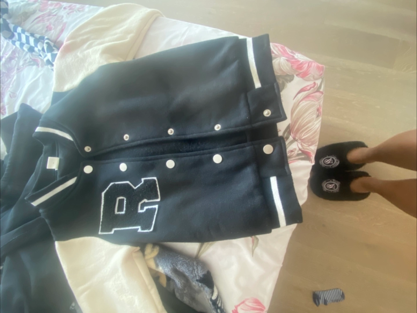 Selling a kids' size 4 black jacket with a white skeleton design $7. It's a fun and stylish piece for your little one! Also a Gap Jean Jacket size 2t $15 and a black and white fleece jacket for $7 it has a pink stain that can be removed when washed ... but all of them were barely worn
