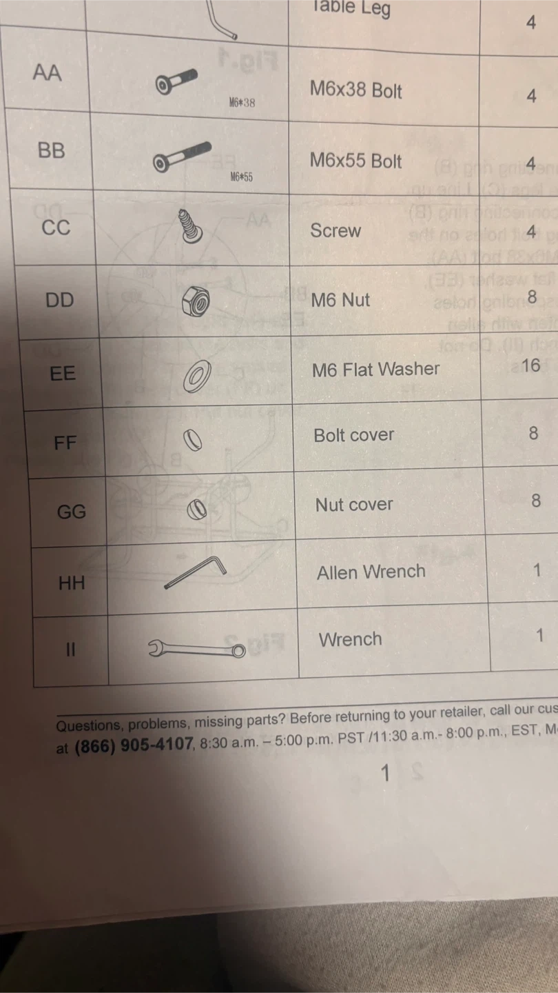 SCREWS MISSING see photo #9 for screws name & quantity. Selling a patio set that includes a glass table, an umbrella, and four foldable chairs. The set is perfect for enjoying the outdoors. The table has a glass top and the chairs are foldable for easy storage. Weight capacity is 250 lbs. The table measures approximately 33.9" x 33.9" and the umbrella spans 59".