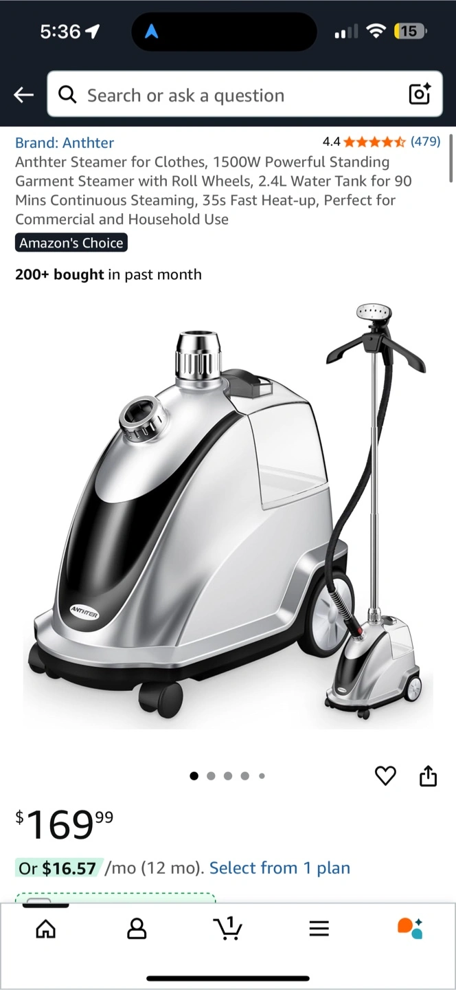 New Unused I'm selling an Anthter garment steamer! It heats up in just 35 seconds and quickly emits 248°F steam. It also has a large 2.4L capacity water tank, which can steam continuously for over 90 minutes. The 6.5ft steam output makes it easy to soften, refresh, and de-wrinkle a wide range of fabrics. The 40g/min strong steam with 6 even steam outlets increases the effective ironing area