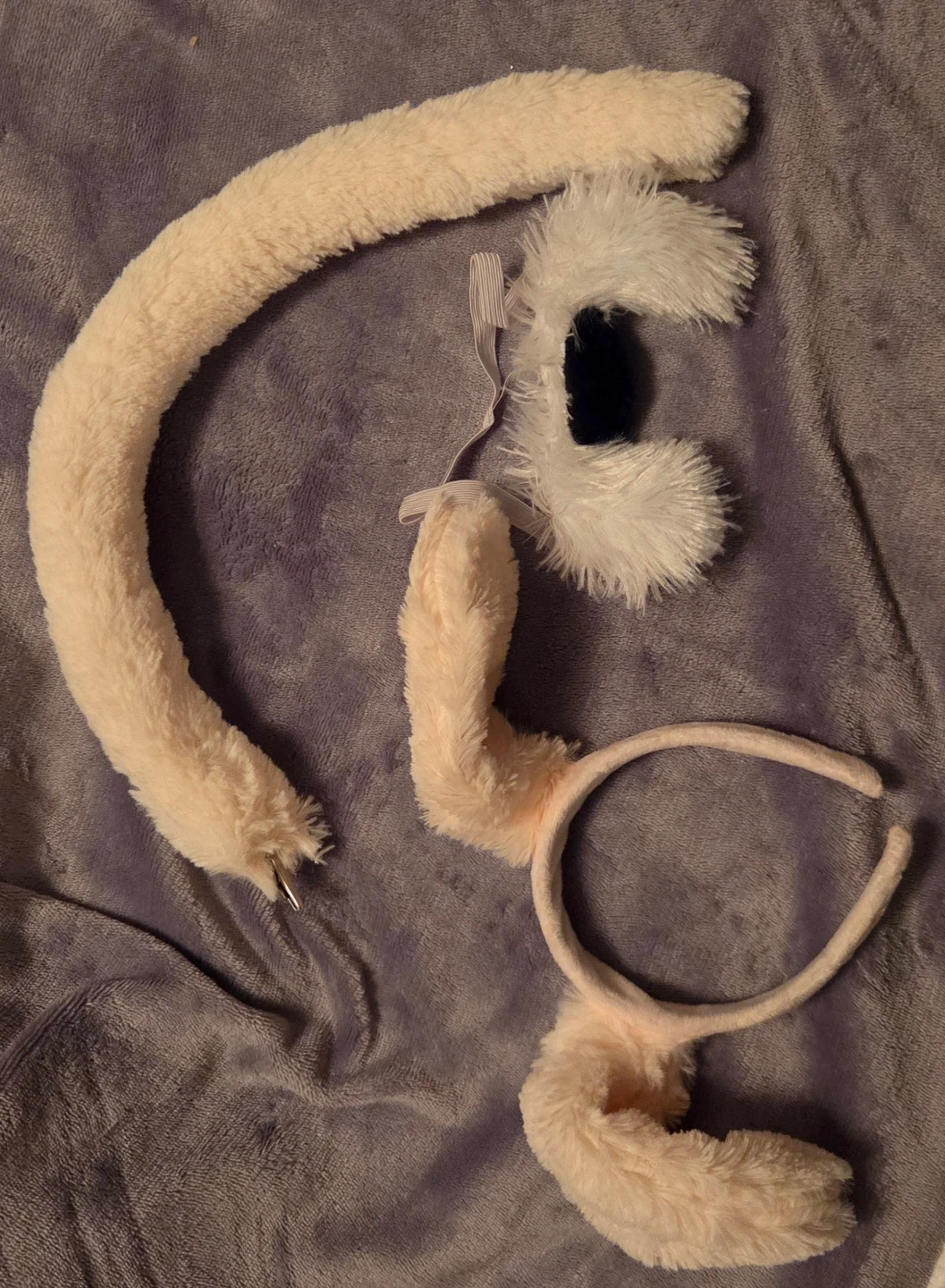 This costume set includes a fluffy tail and ears, perfect for dress-up or parties. The tail attaches with a clip, and the ears are on a comfortable headband. It's a fun accessory for kids and adults alike!