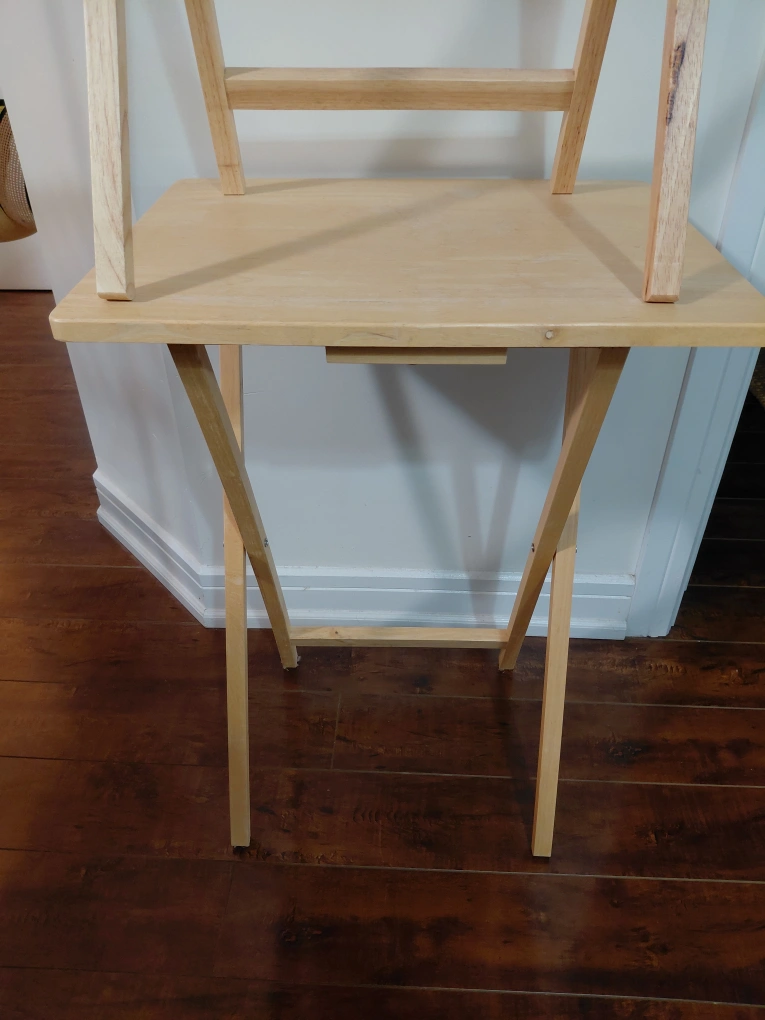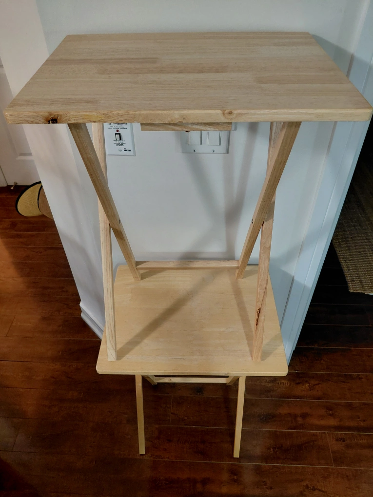 2 light pine collapsible tables. one is as new, the other has a tiny bit of surface damage.