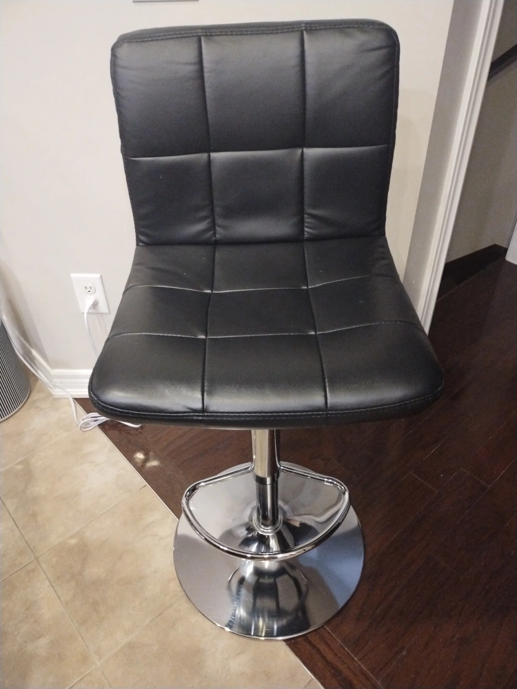 Selling a black swivel bar stool. It's in great shape and would look great in any kitchen or bar area! The stool has a padded seat and a chrome base.