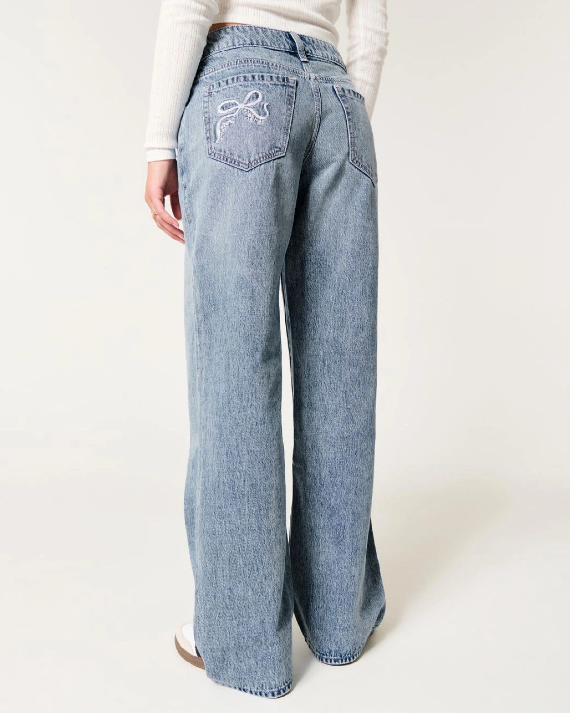 Hollister Low-rise Embroidered Bow Jeans ⋆𐙚₊˚⊹♡